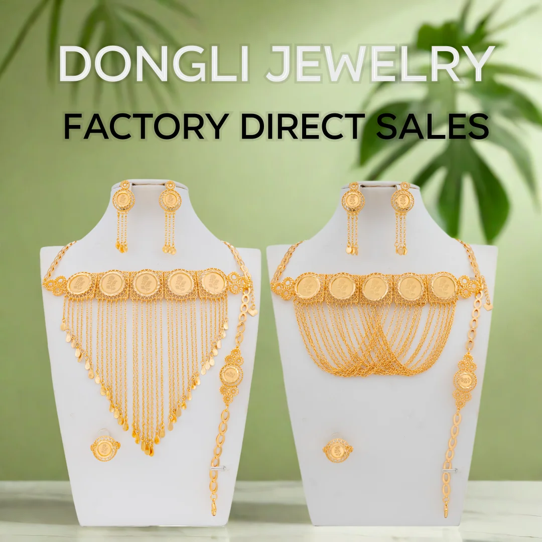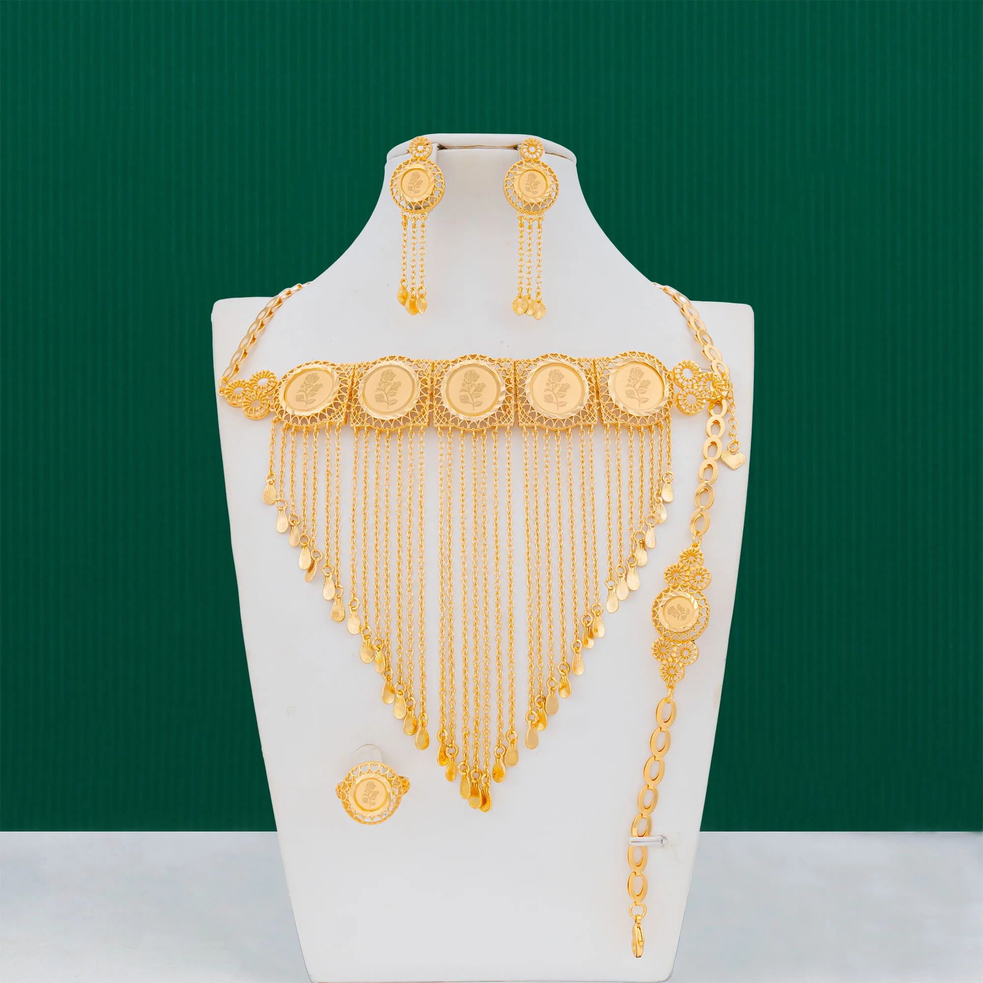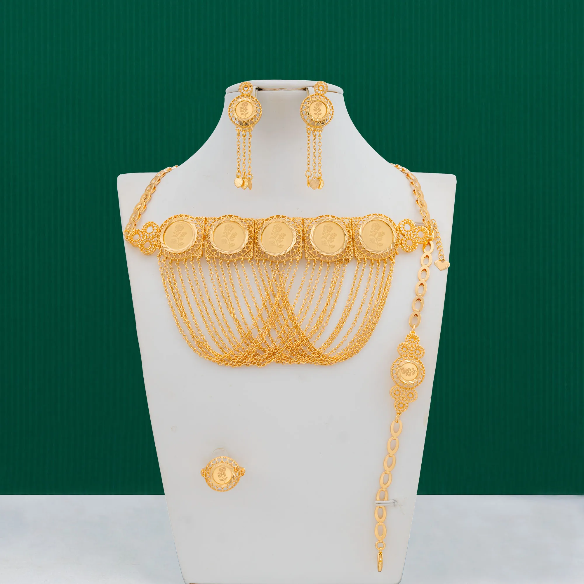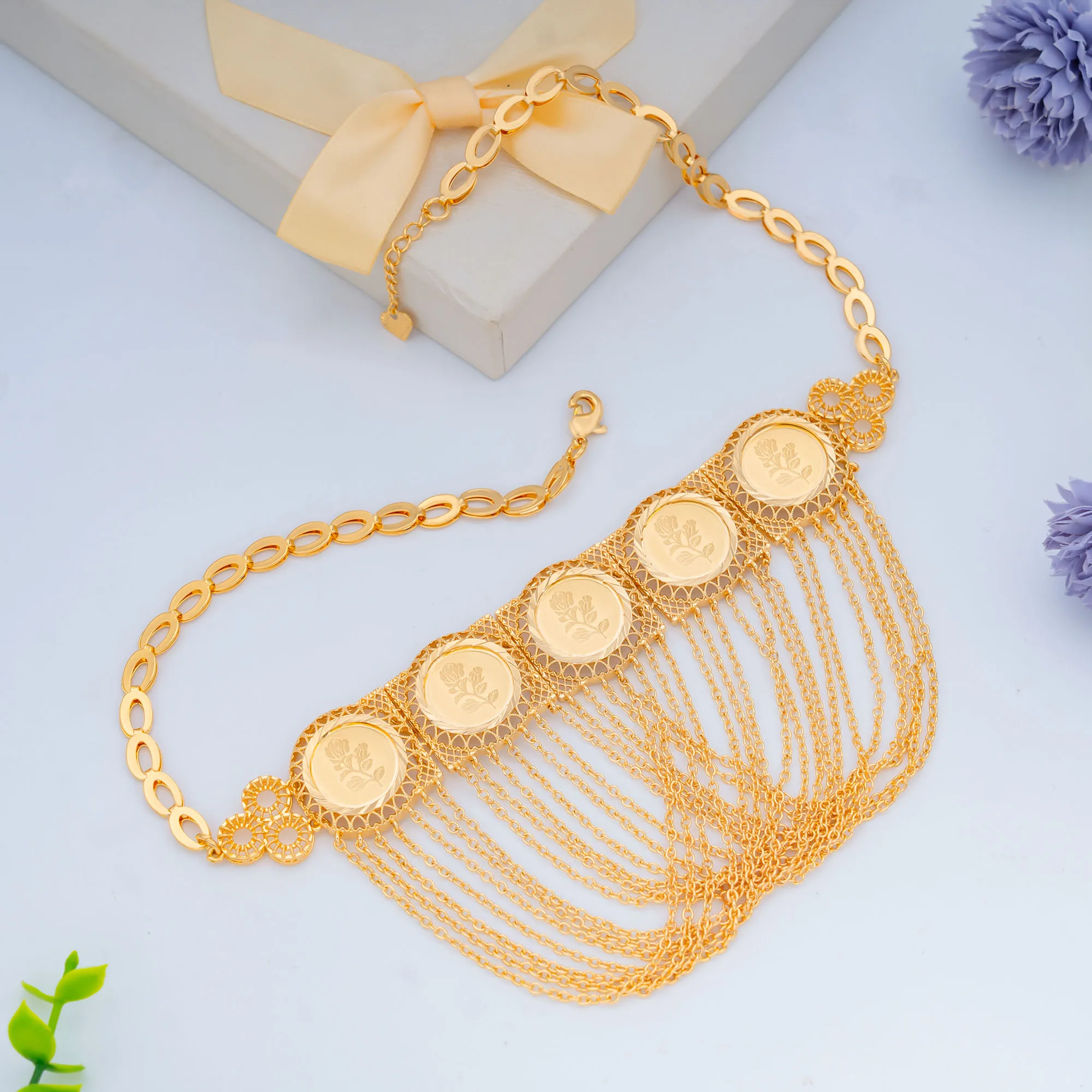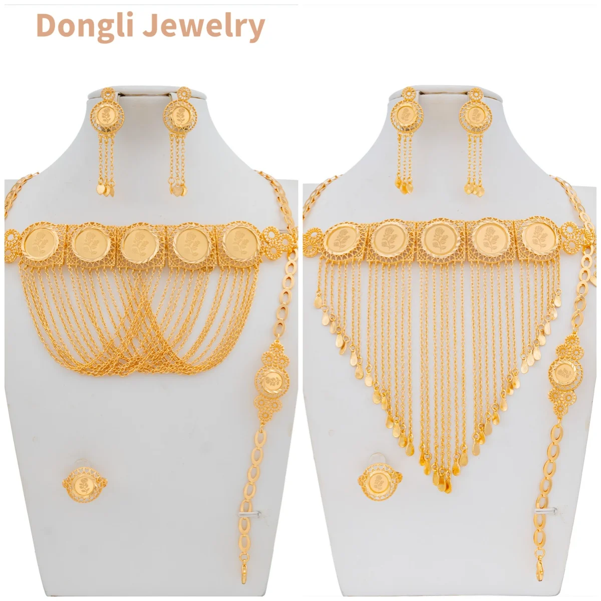Dongli Gold Plated Bridal Coin Necklace Set, Arabic Rose Design, Layered Tassel & Draped Chain Styles, Traditional Gulf Jewelry