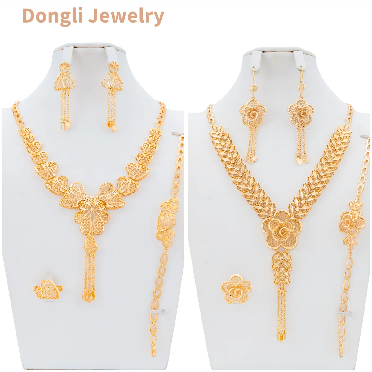 Dongli Jewelry Middle Eastern Style Jewelry Set,Ramadan Hot Sale,Exquisite Brass Craft Necklace, Bracelet, Earrings & Ring