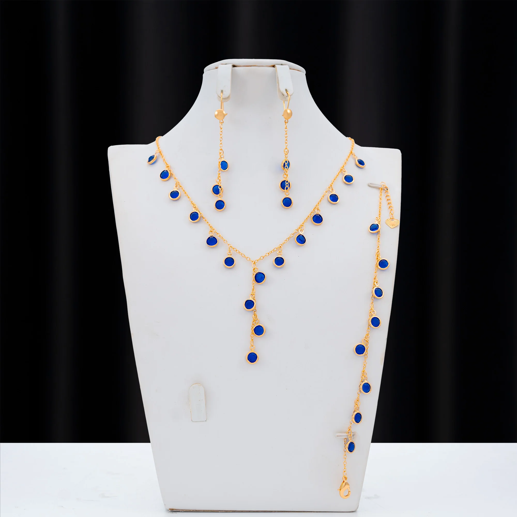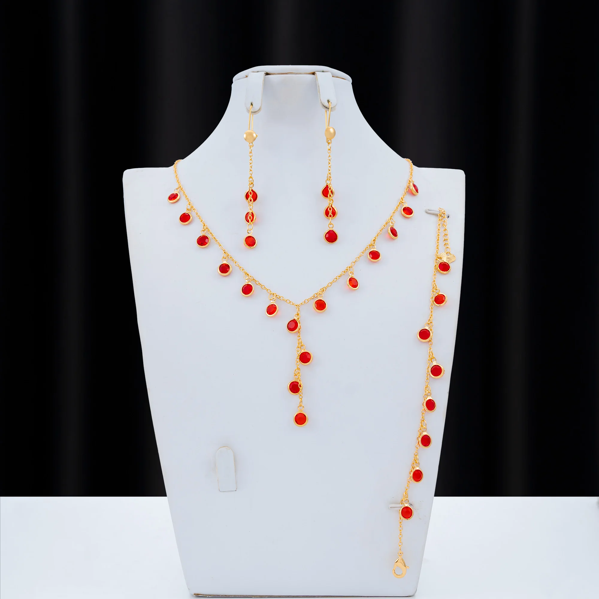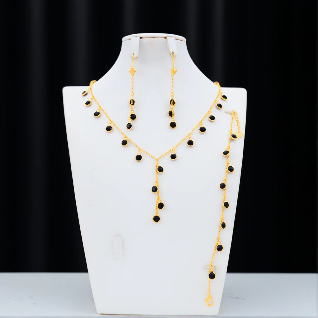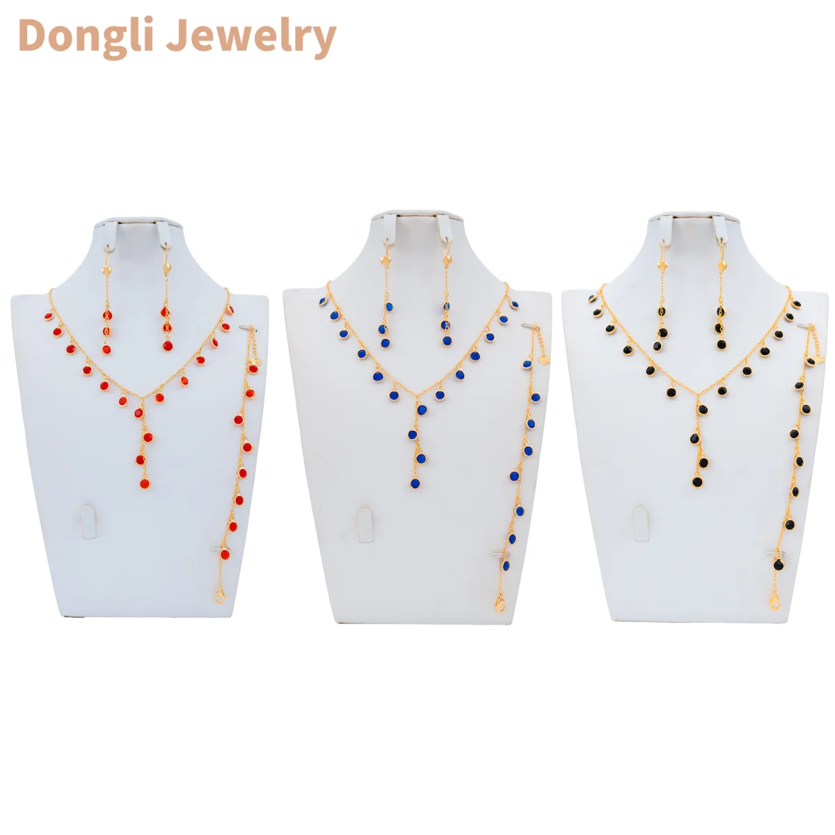 Dongli Jewelry Affordable Champagne Gold 3-Piece Jewelry Set with Round Colorful Stone Pendants - Wholesale