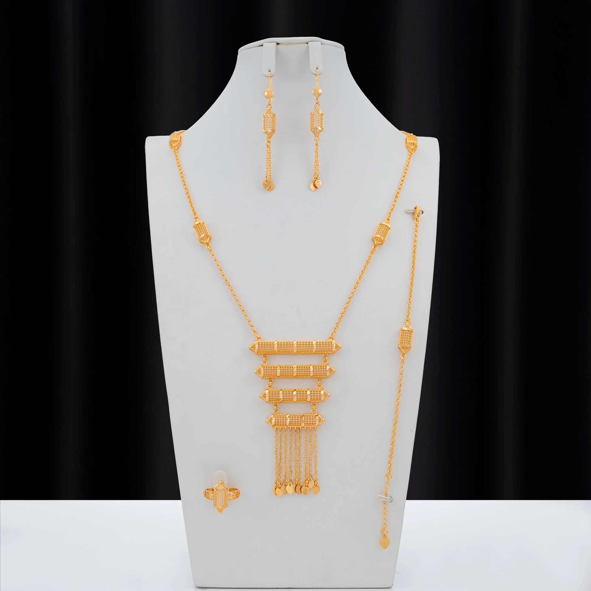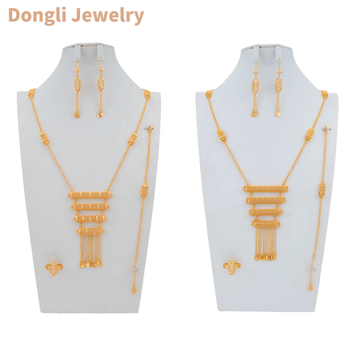 Dongli Brass Jewelry Four-Piece Set Arabic Traditional Style Geometric Pattern Symmetrical Design for Banquet Celebrations