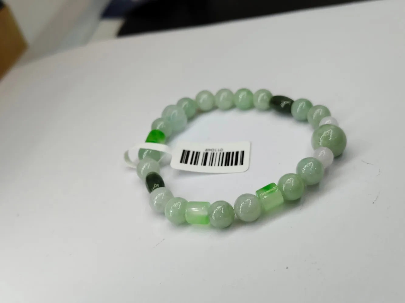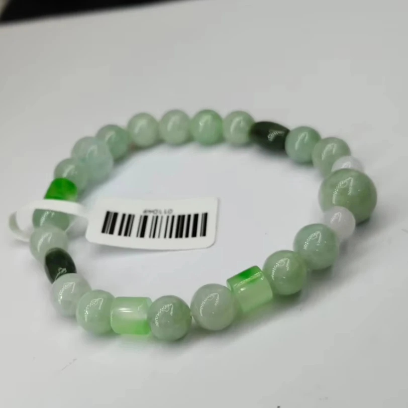 Chinese Retro Style Single Ring Elastic Rope Bracelet, Jade Natural Emerald Green for Men and Women