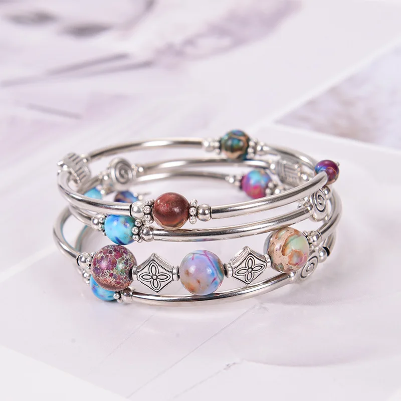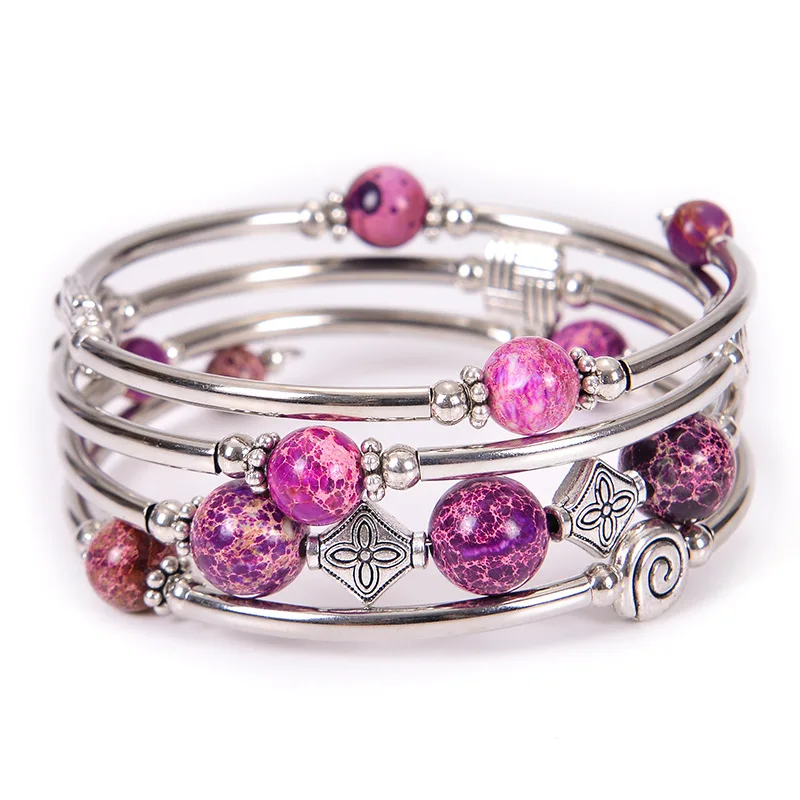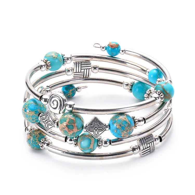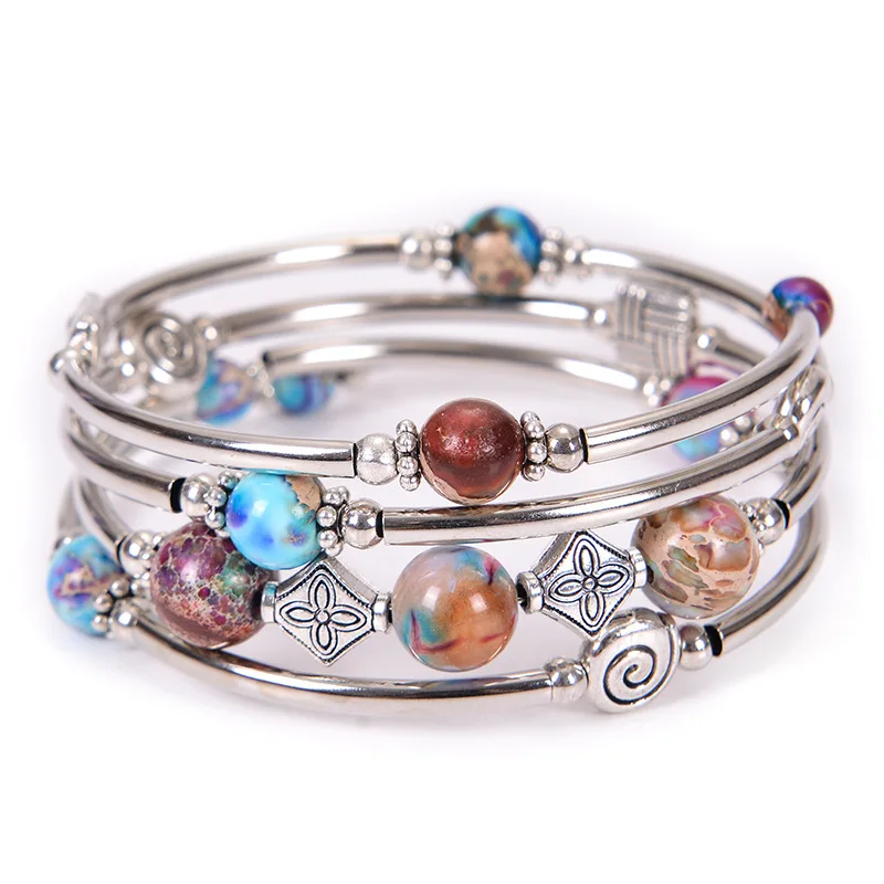Nabest Wholesale Fashion Bohemian Charm Bead Bracelet Natural Stone and Copper Tube Wrap for Women and Men