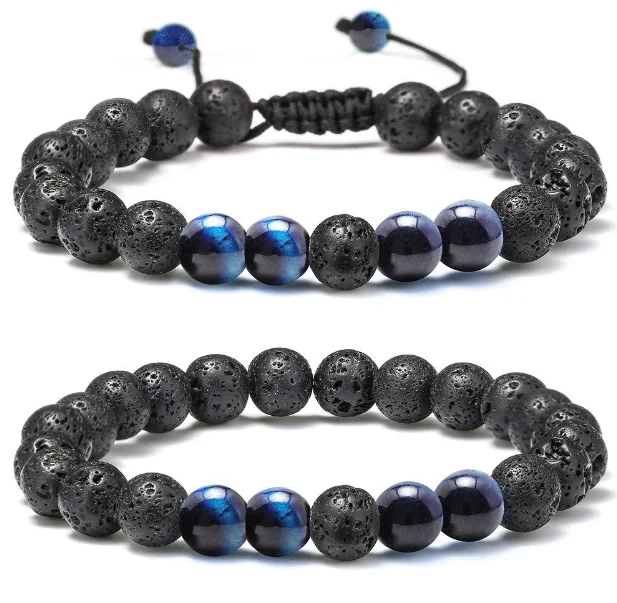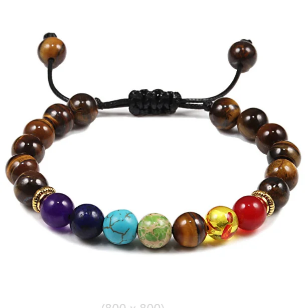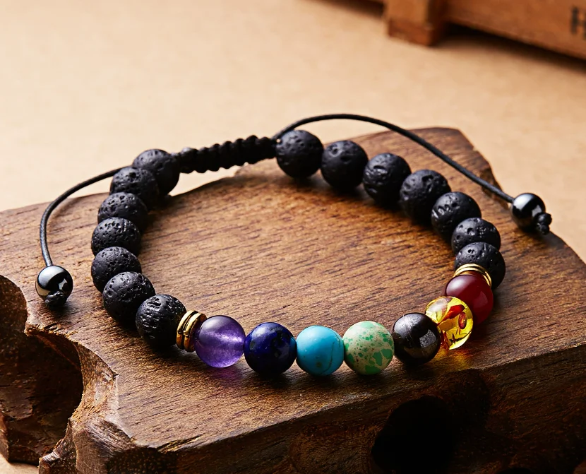 Wholesale 8mm Amethyst Natural Lava Stone Beads Bracelet Adjustable Yoga Healing 7 Chakra Jewelry for Women and Men