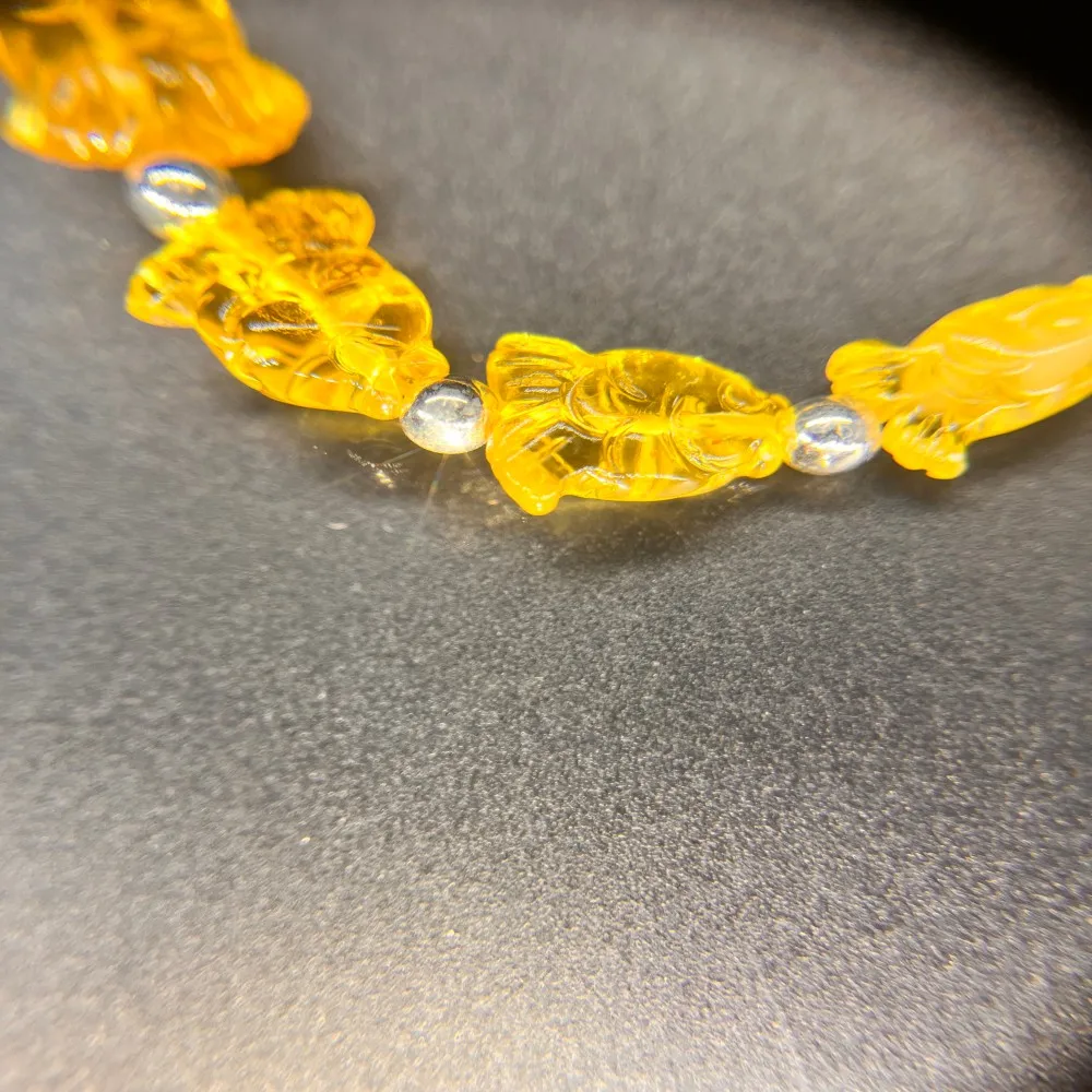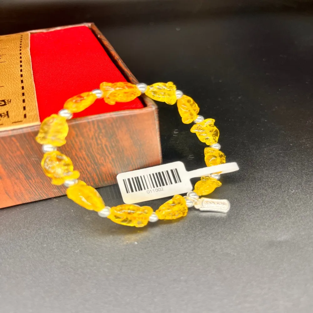 Unique Handmade Natural Beeswax Fine Beaded Bracelet with Small Fish Silver Pendant Gift Accessory
