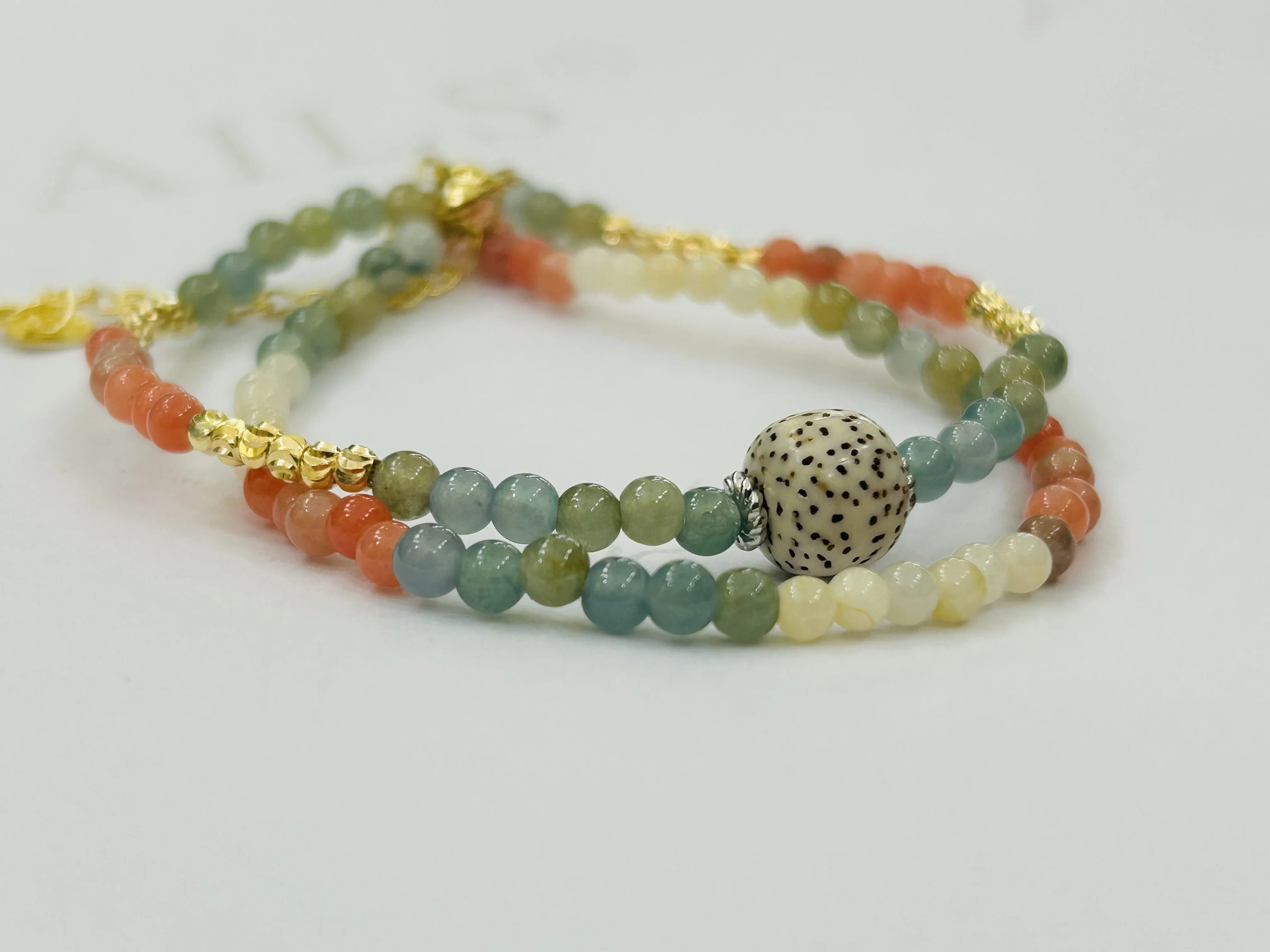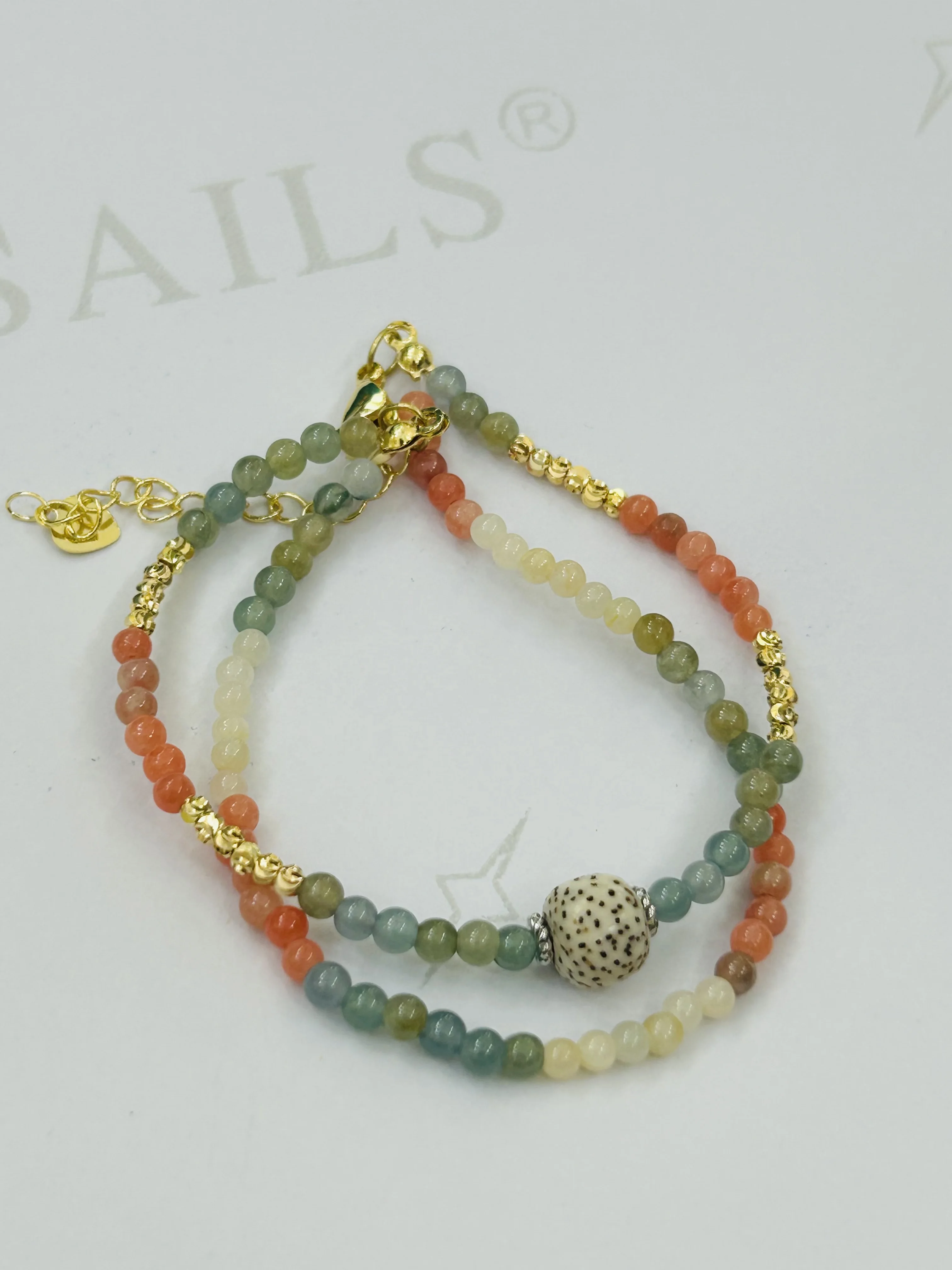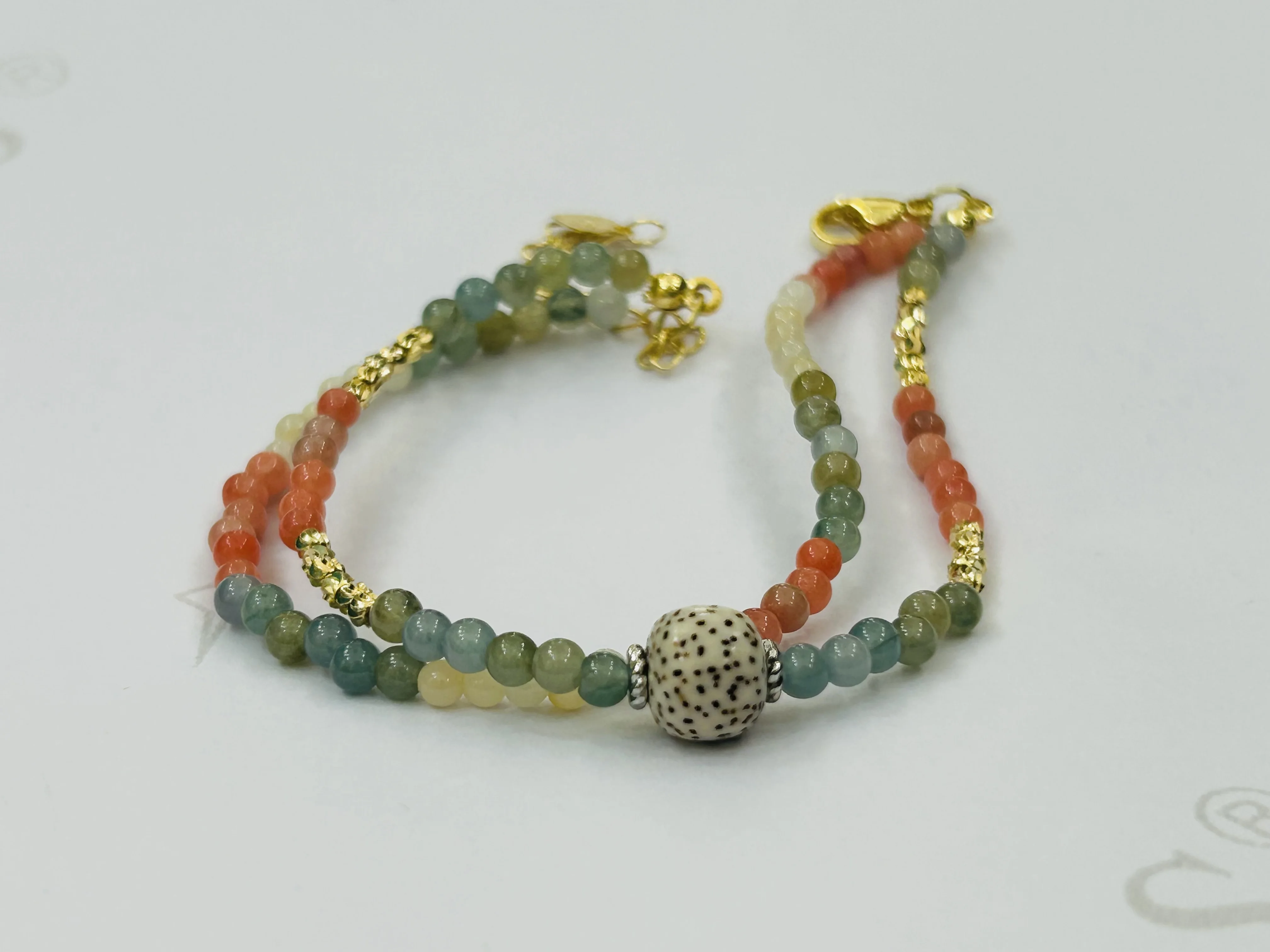 Bohemian Bead Bracelet 18k Gold-plated Chain Multicolored Jade Stone Bead Stacked Jewelry