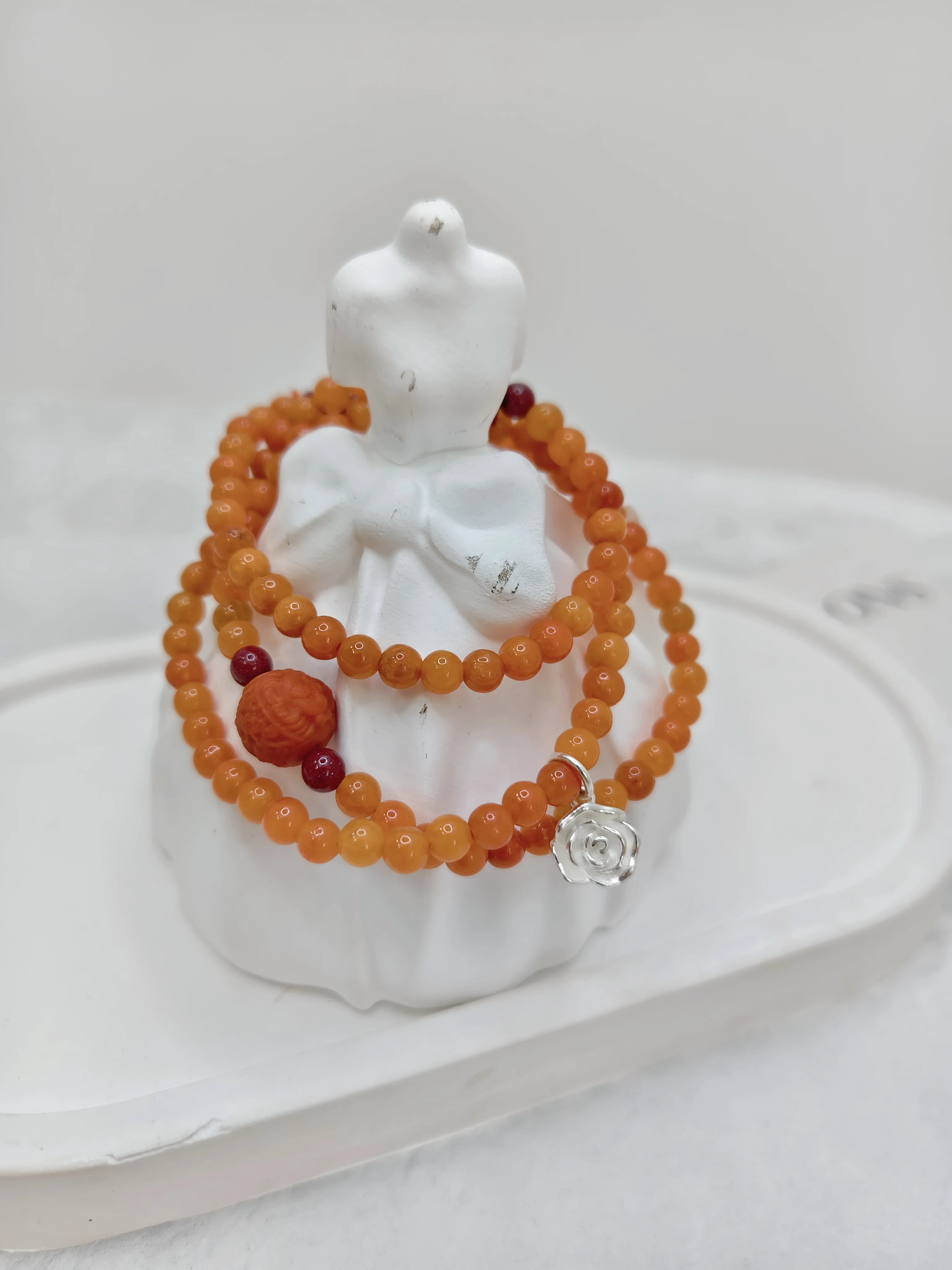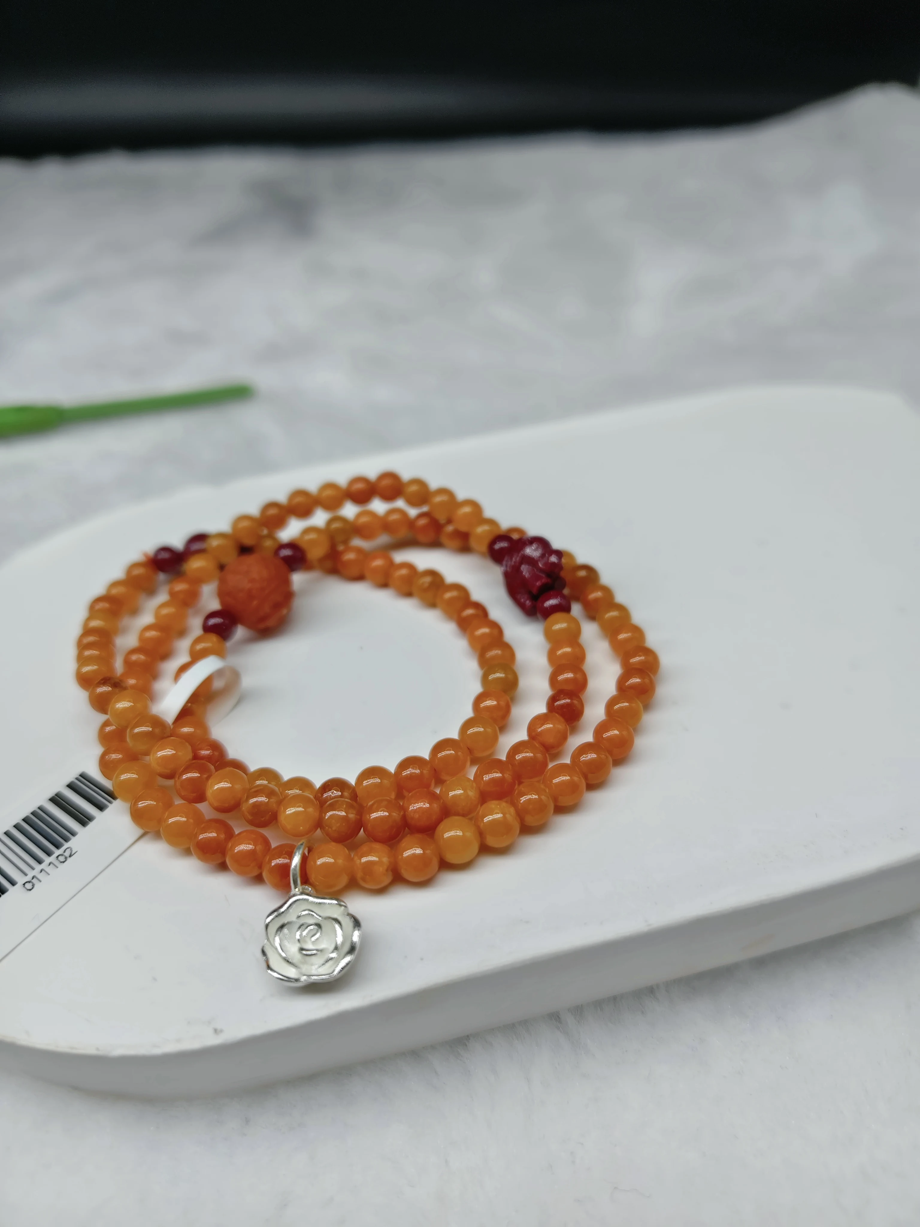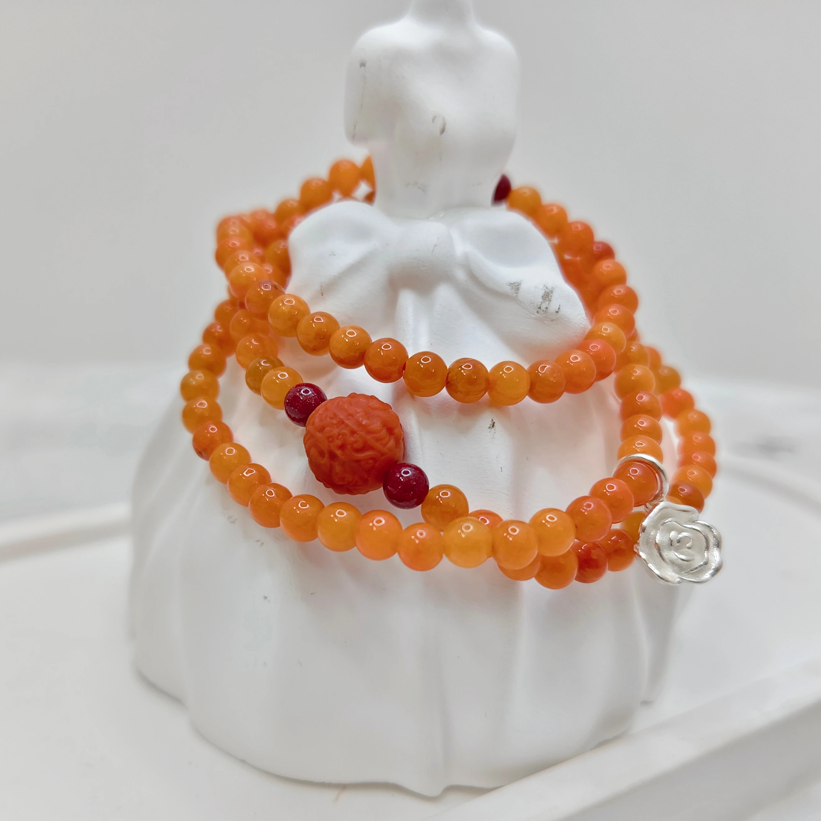 Multi-layer Hand Chain with Natural Orange Red Jade Beads, Silver Pendant, Elastic Natural Stone Beads Hand Chain, Ladies Gift.