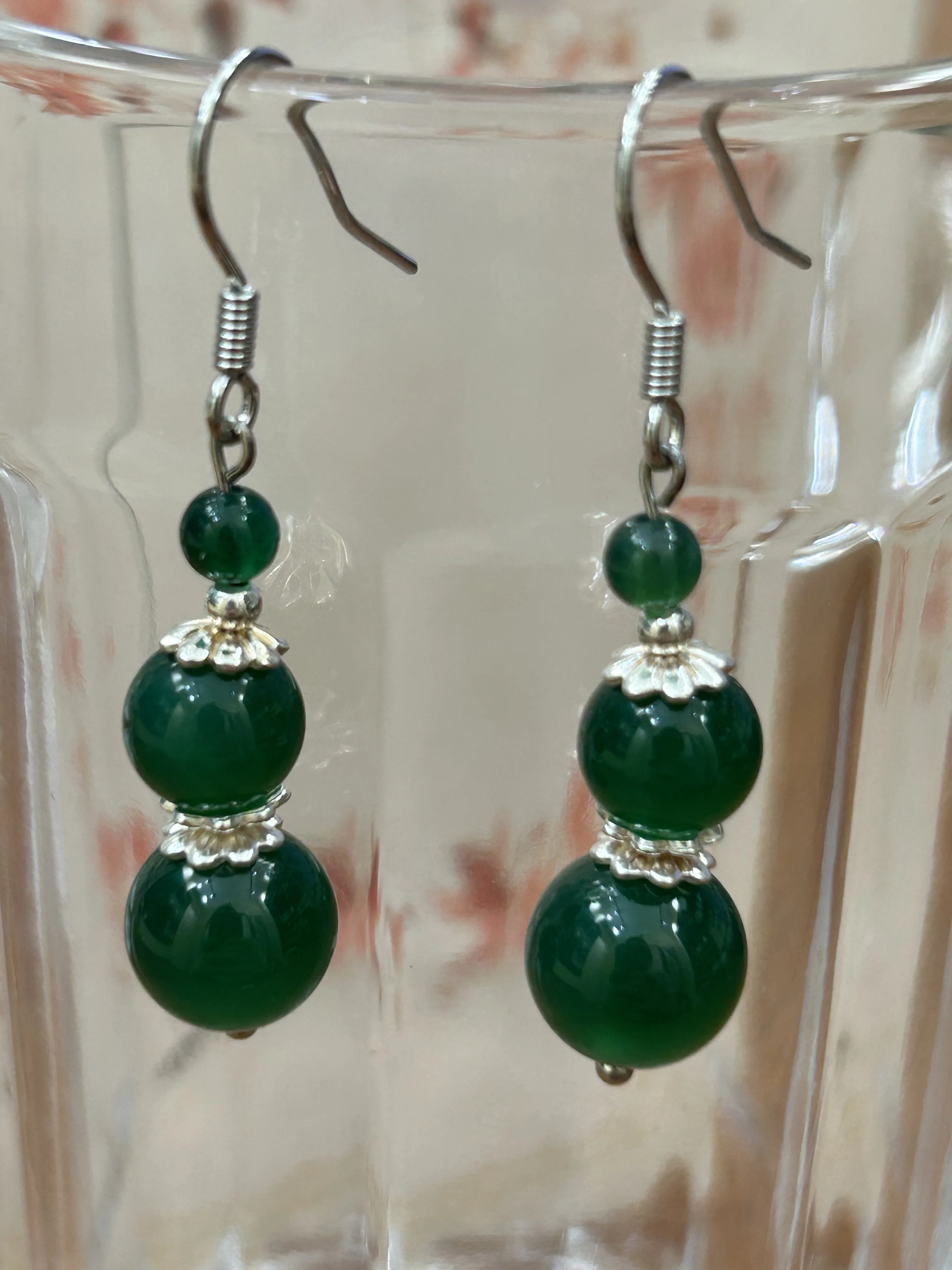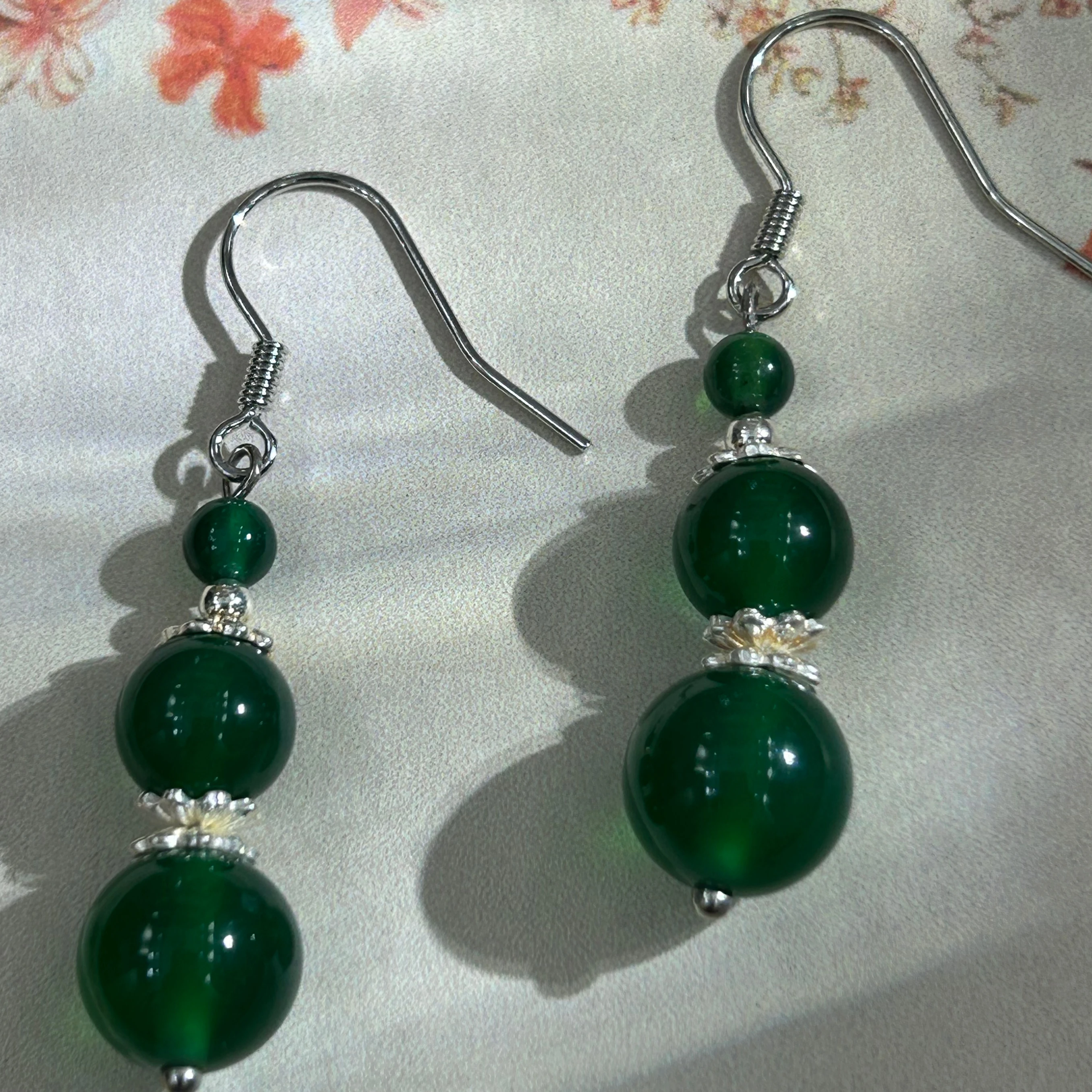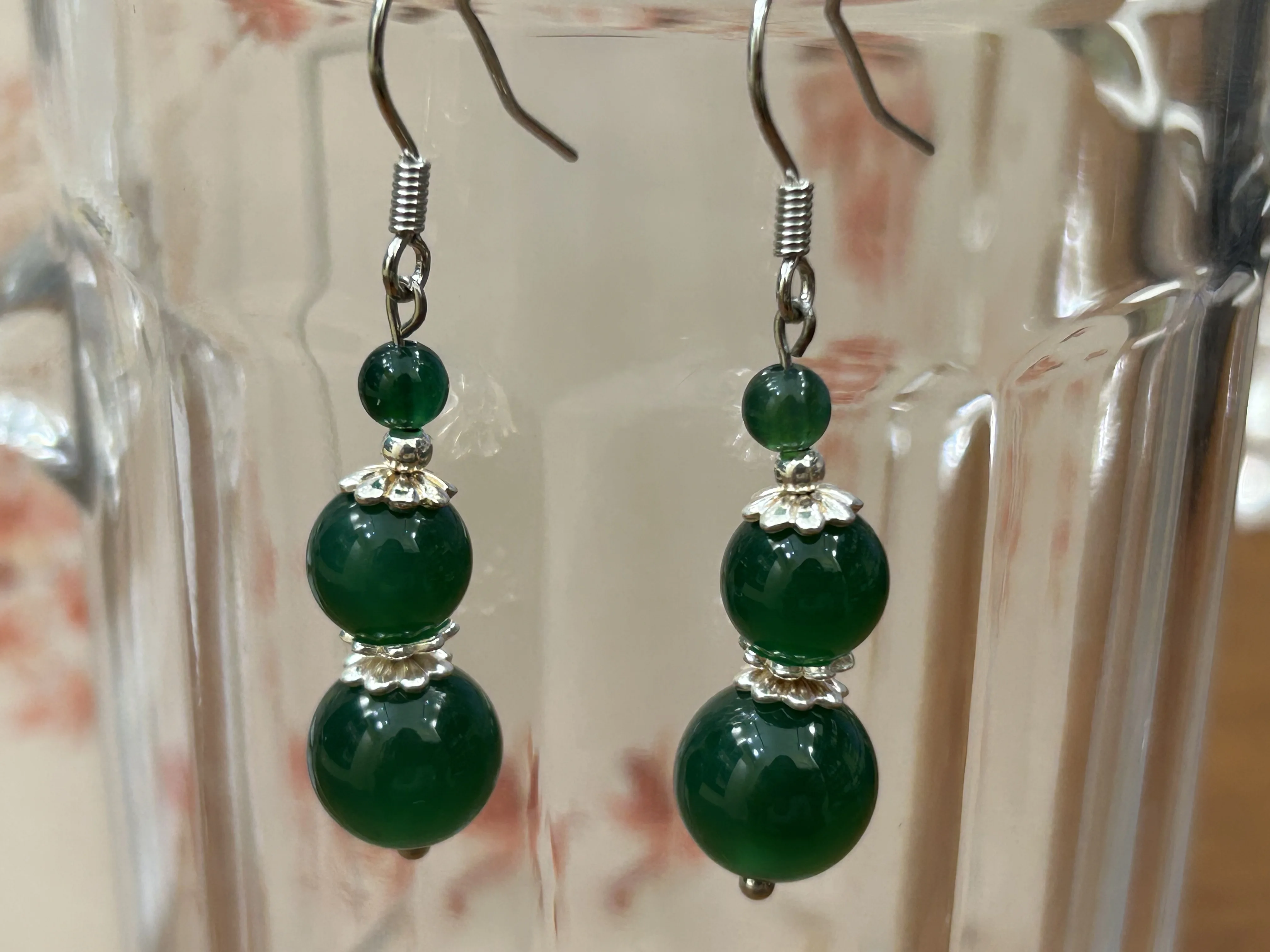 High Quality Green Agate Earrings, Round Beads, Healing Gemstones, Fashionable Jewelry Earrings, Women's Jewelry