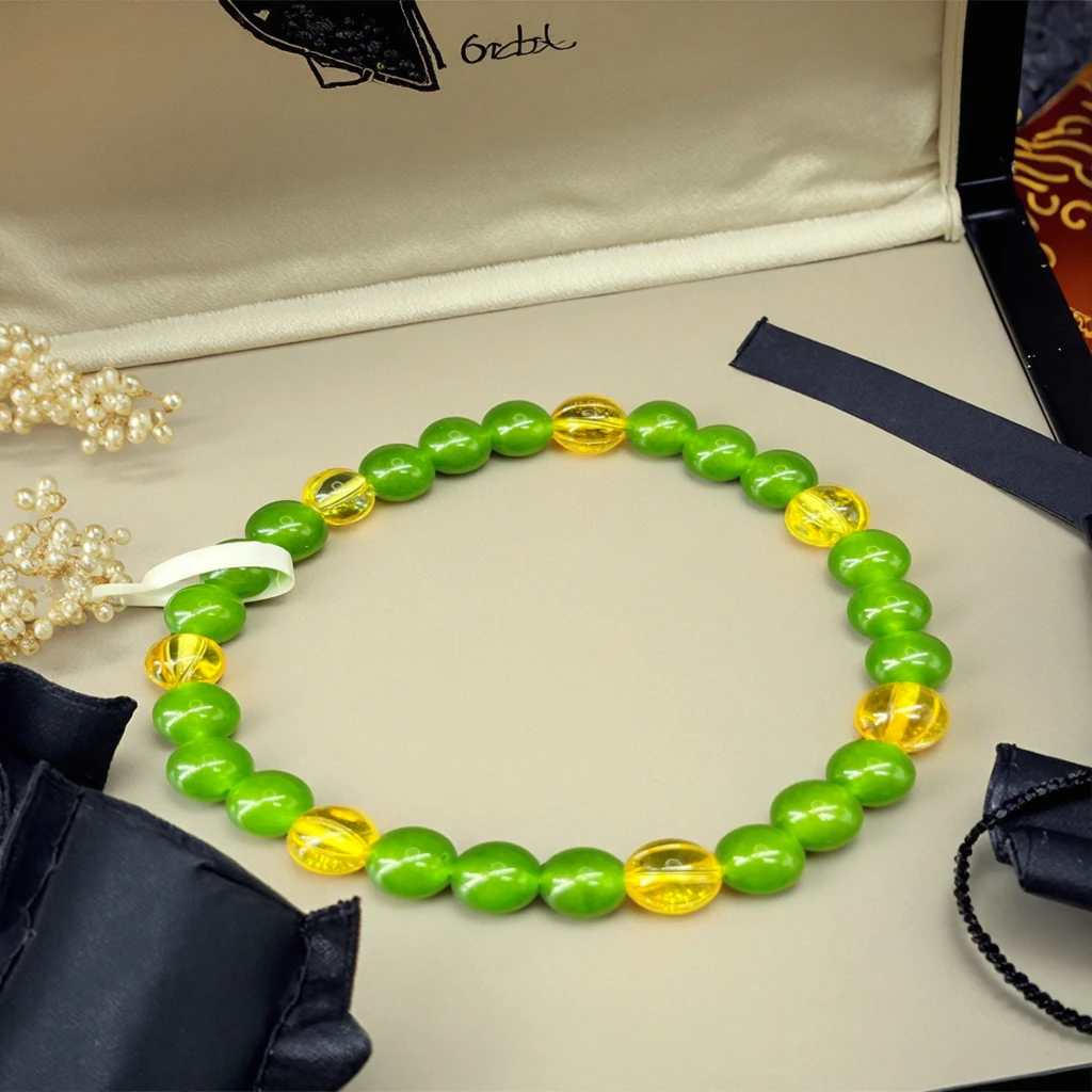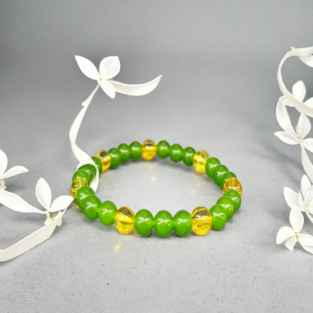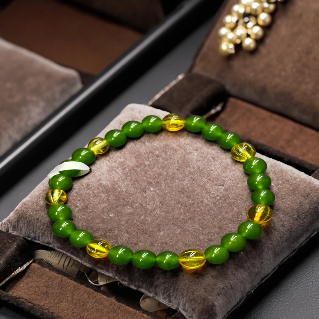 Fine Jewelry Collection Handstring Beaded Bracelet with Natural Hotan Jasper for Gift Featuring Main Stone Jade