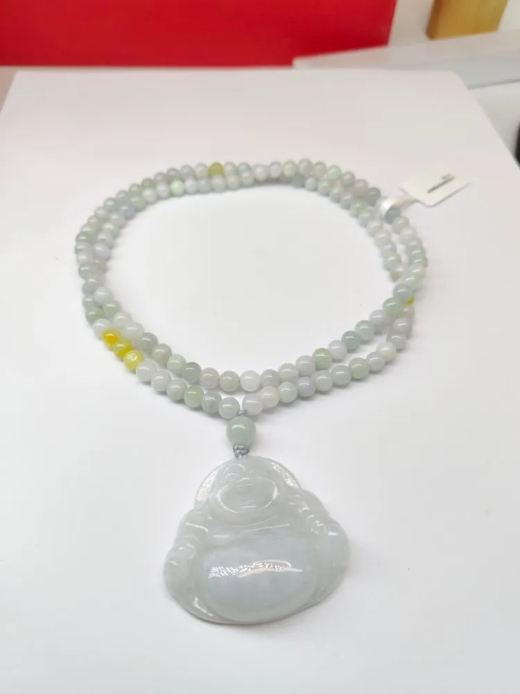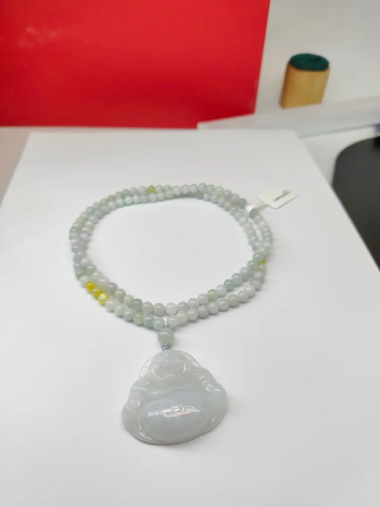 Natural Jade Bead Necklace with Buddha Pendant As a Fashionable Accessory
