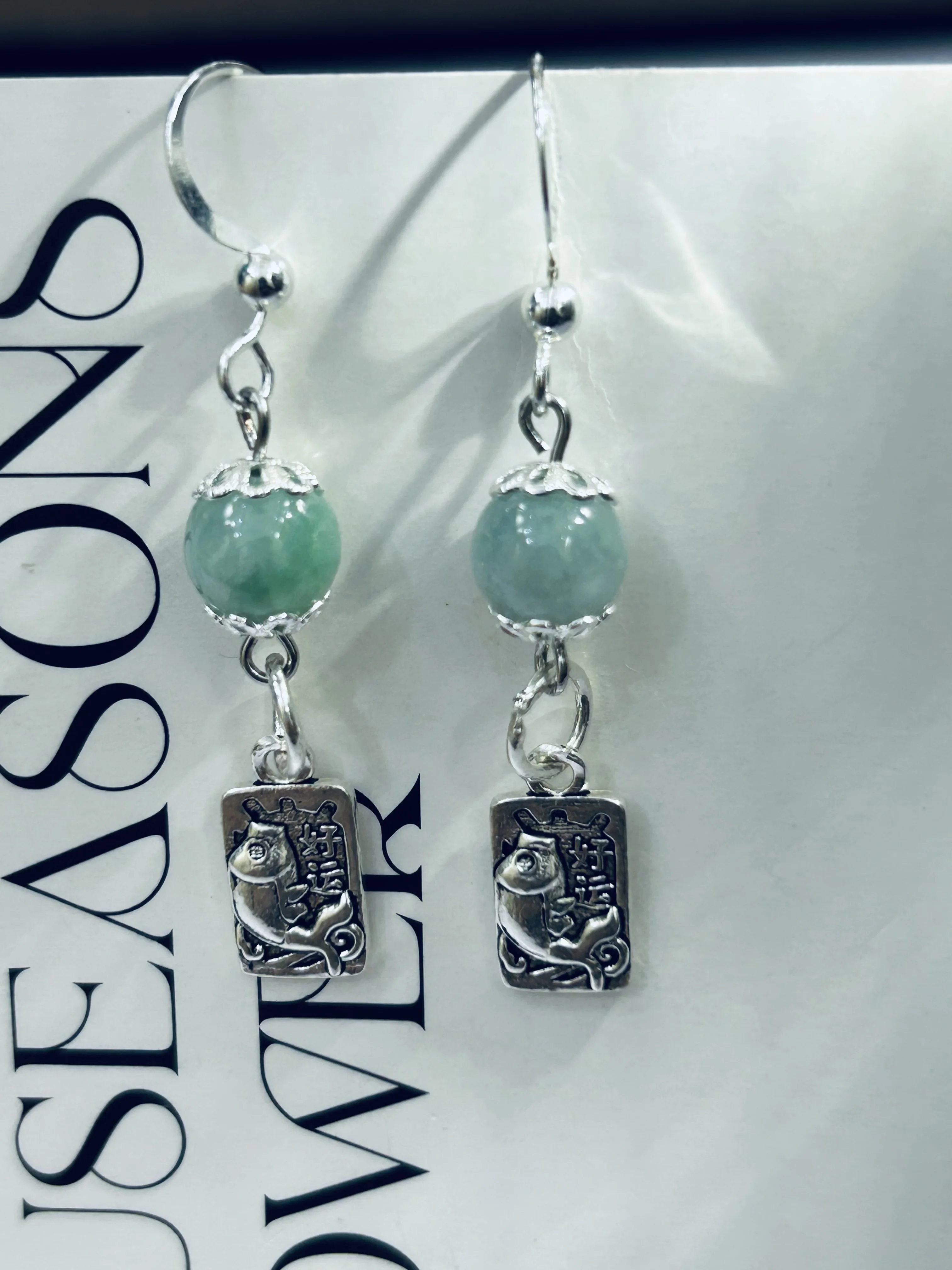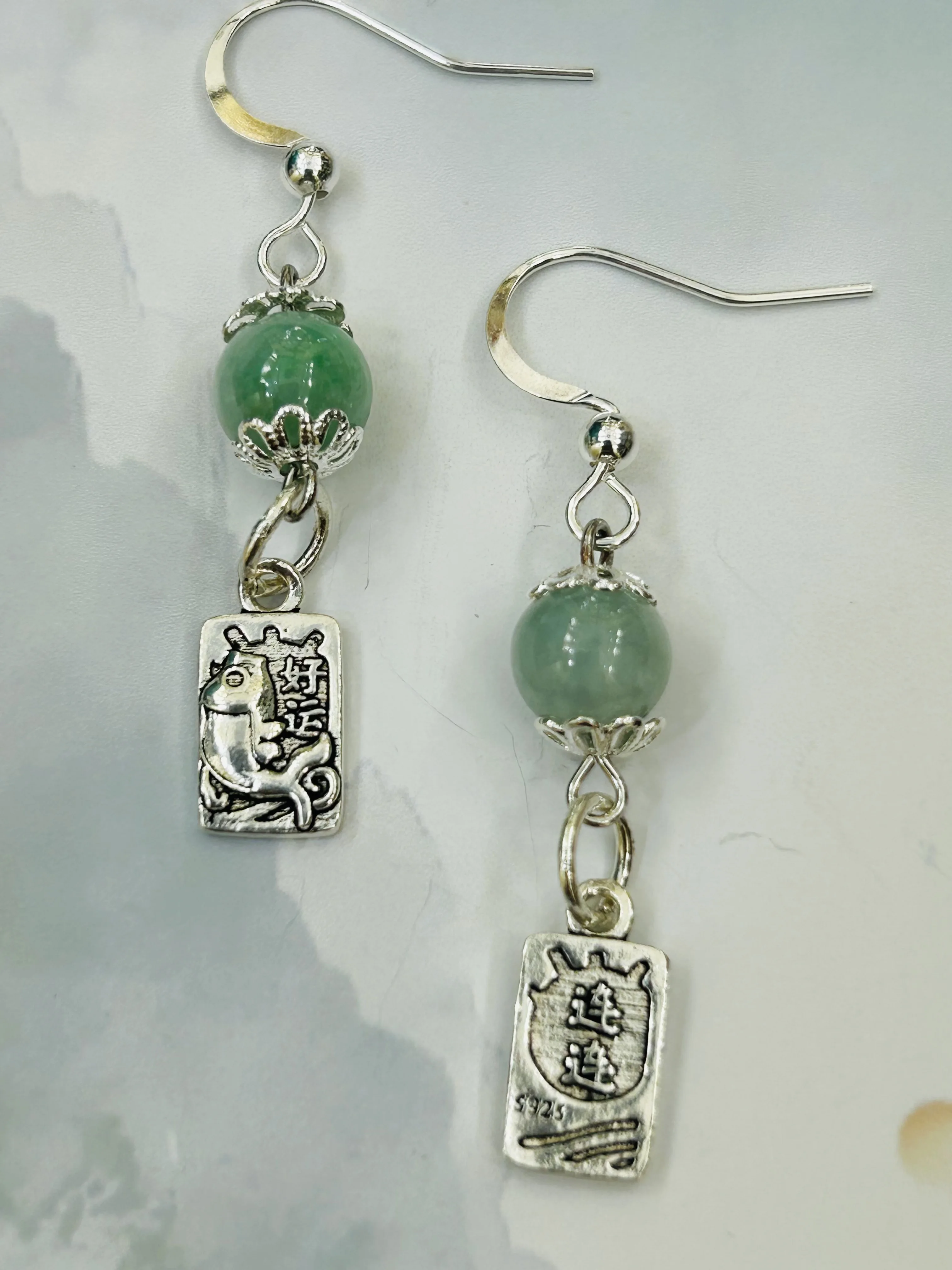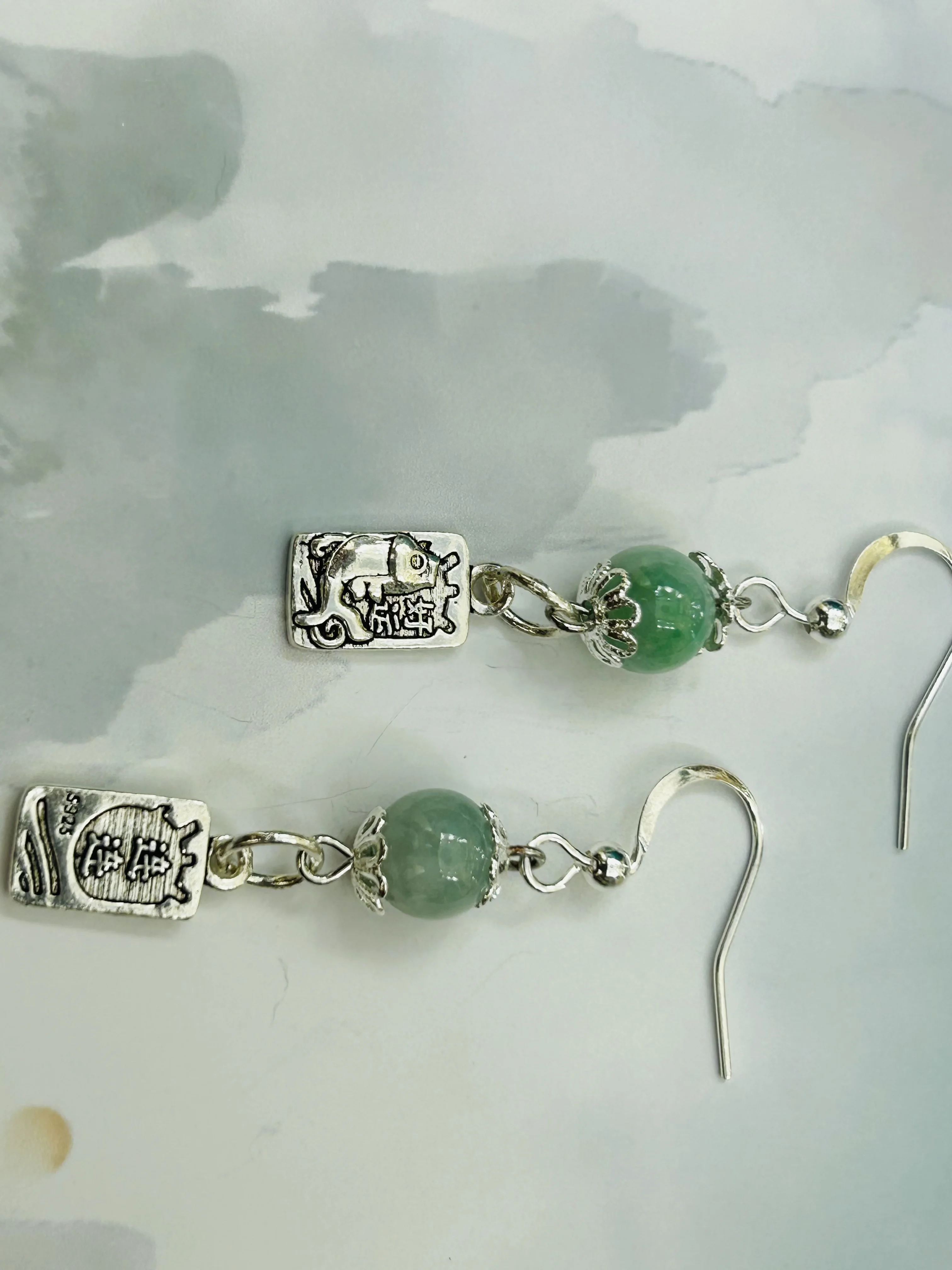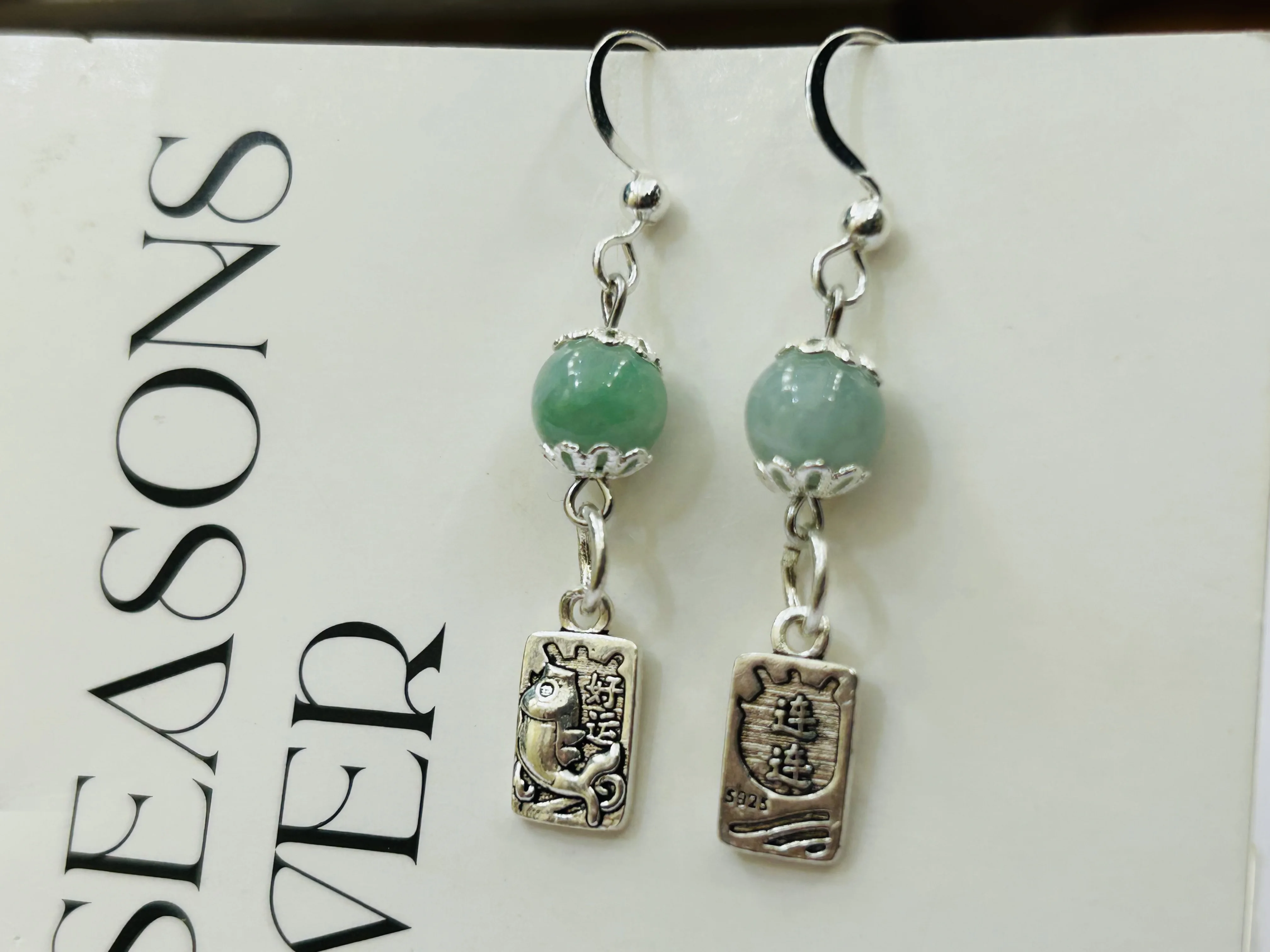 S925 Sterling Silver Lucky Earrings, Jade Green Round Bead Earrings, Fashionable and Trendy Long Earrings