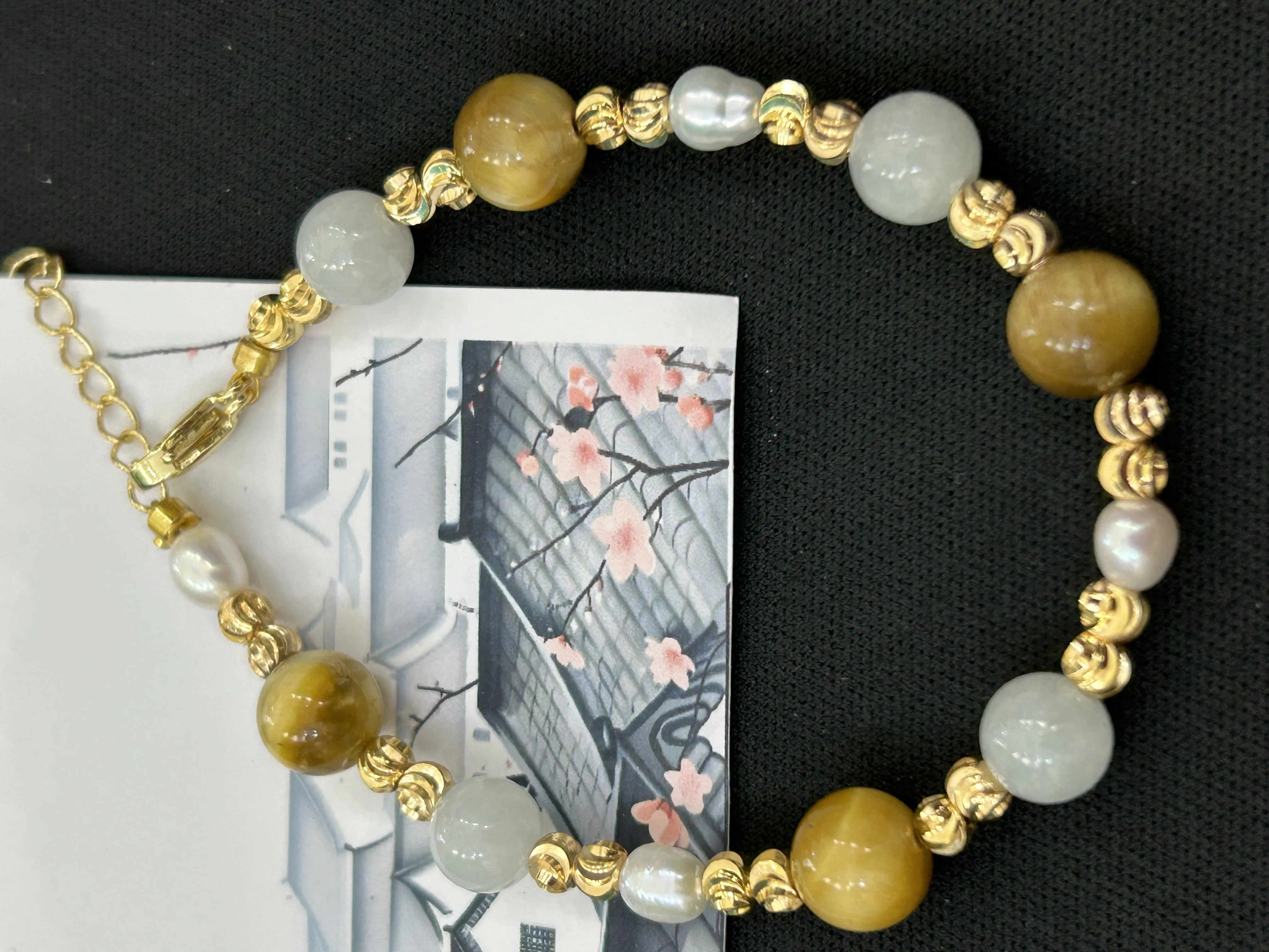 Natural Jade, Natural Tiger Stone Chain, Women's Handmade Bracelet, Pure Silver Daily Necessities