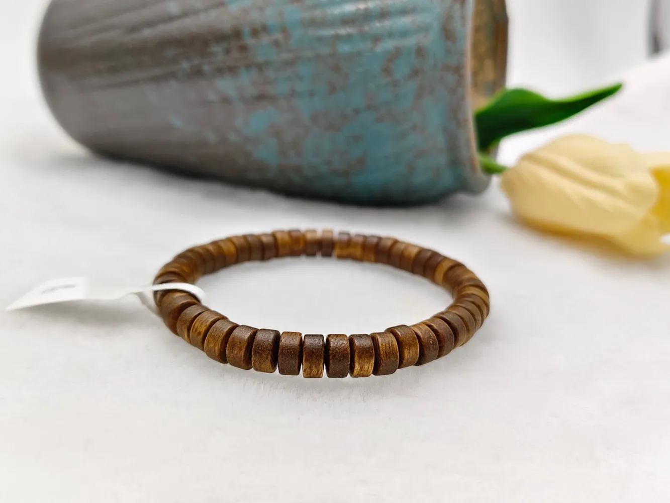 New Vintage Wooden Ethnic Style Men's Handcrafted Bead Bracelet with Adjustable Cord