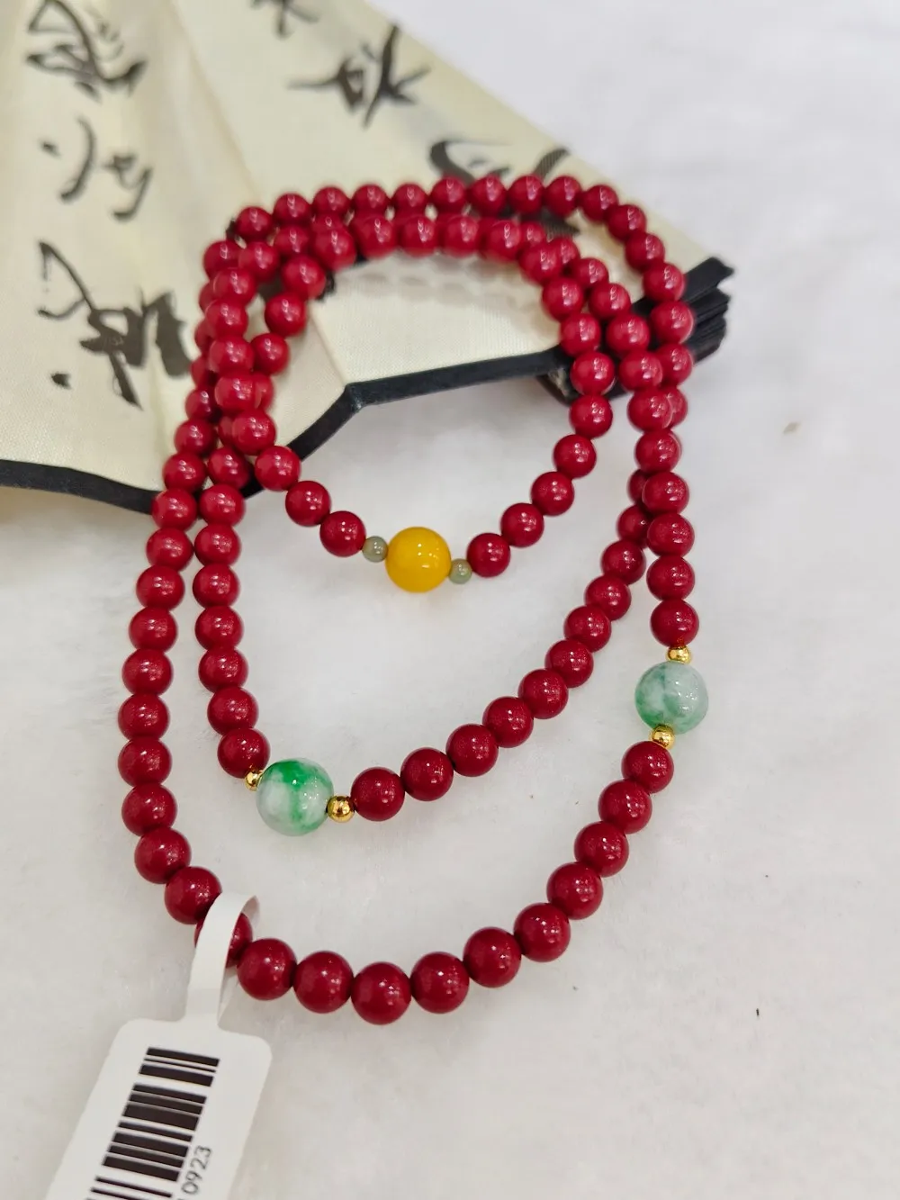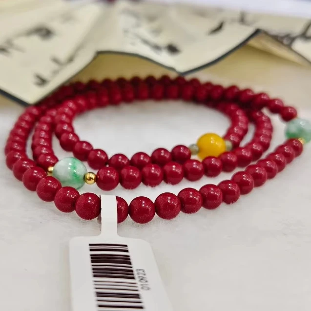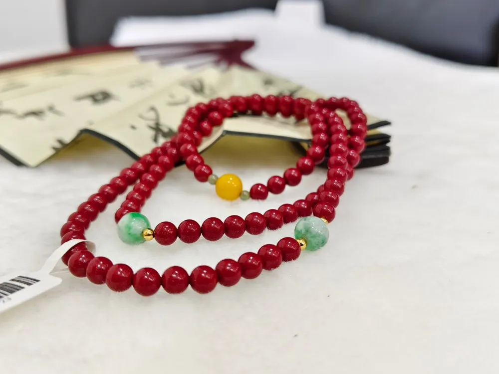 Chinese Traditional Handicrafts, Lucky Jewelry, Cinnabar Bead, Natural Jade Multi-layer Bracelet