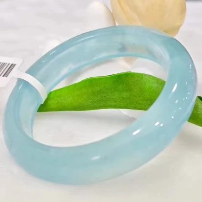 Wholesale Natural Cat Eye Blue Ice Agate Round Bracelet Elegant and Exquisite for Women