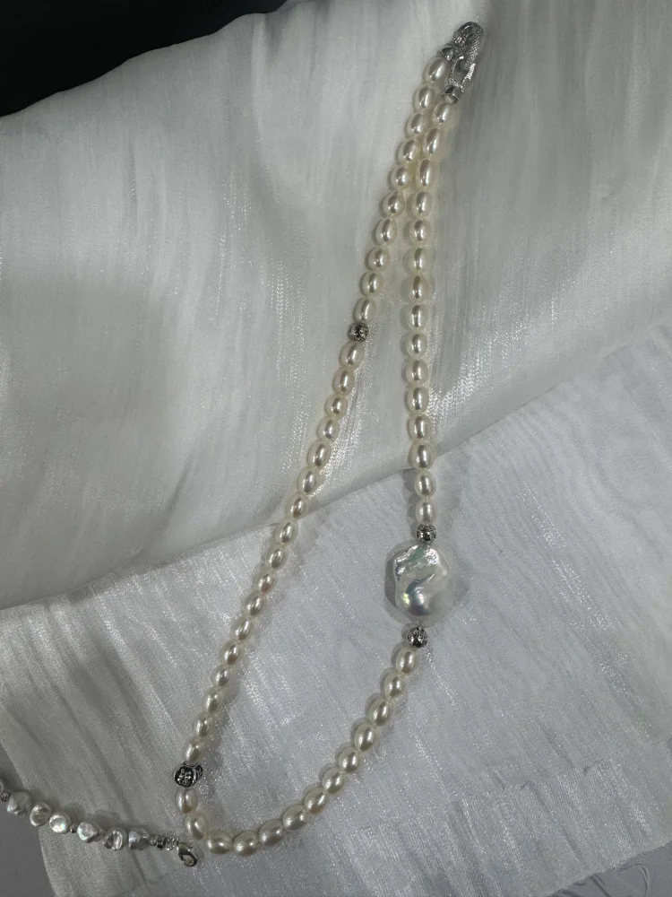 YOB Jewelry Edison Pearl Grade Round White Pendant Necklace Rhodium Plated Trendy Women