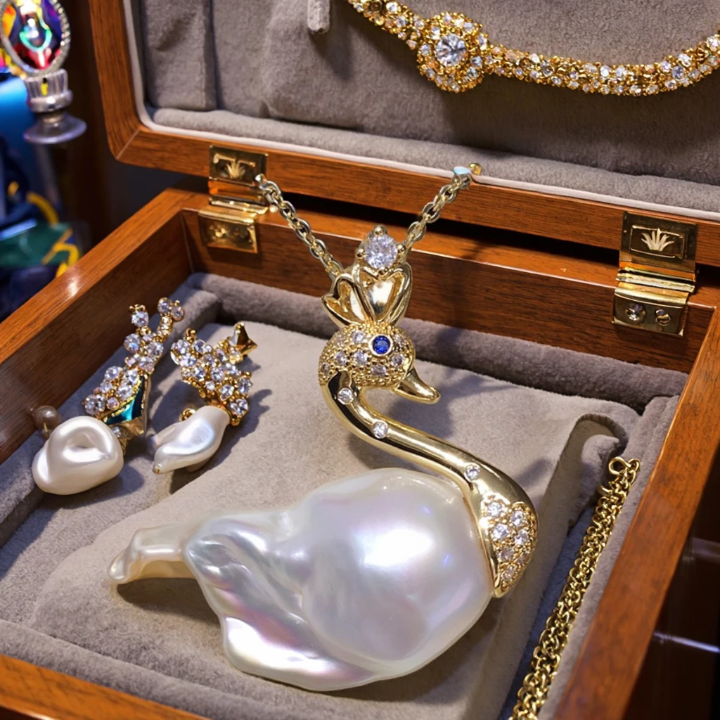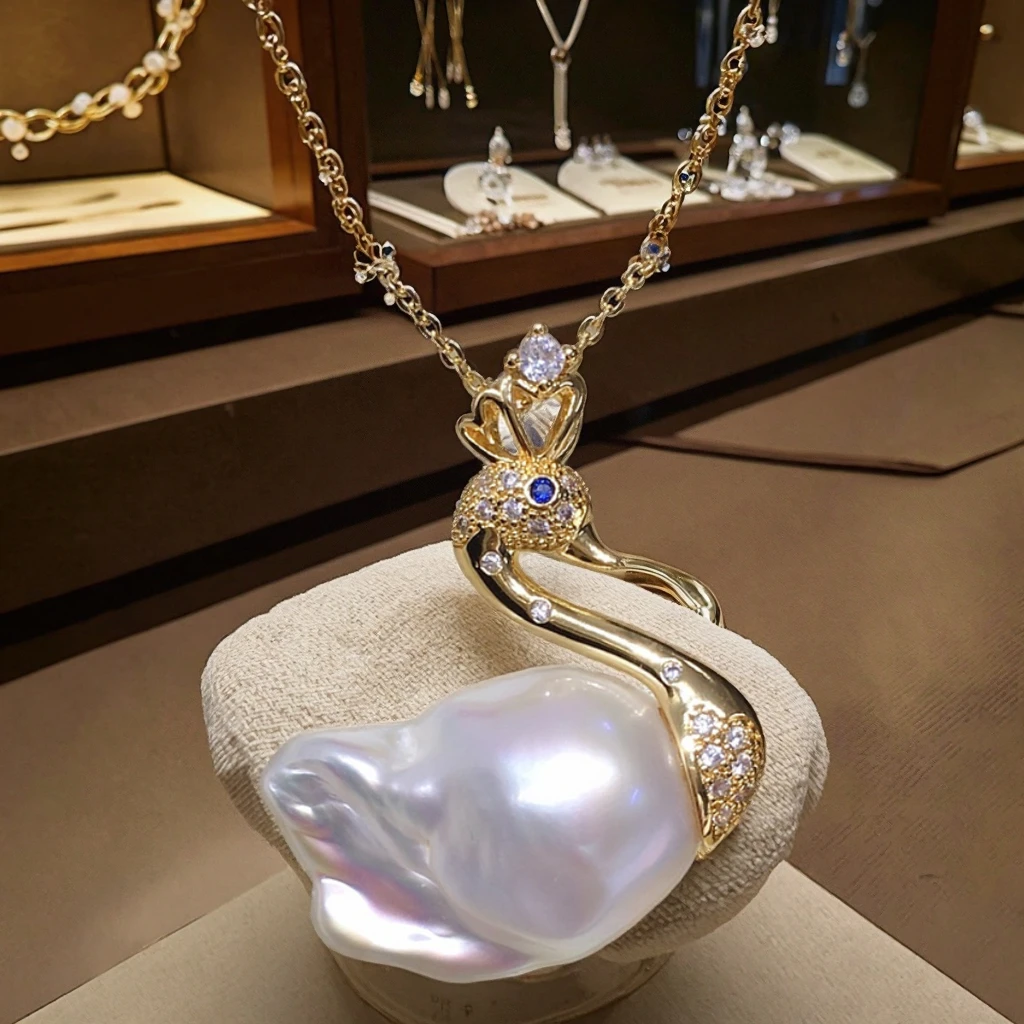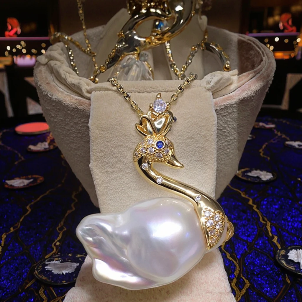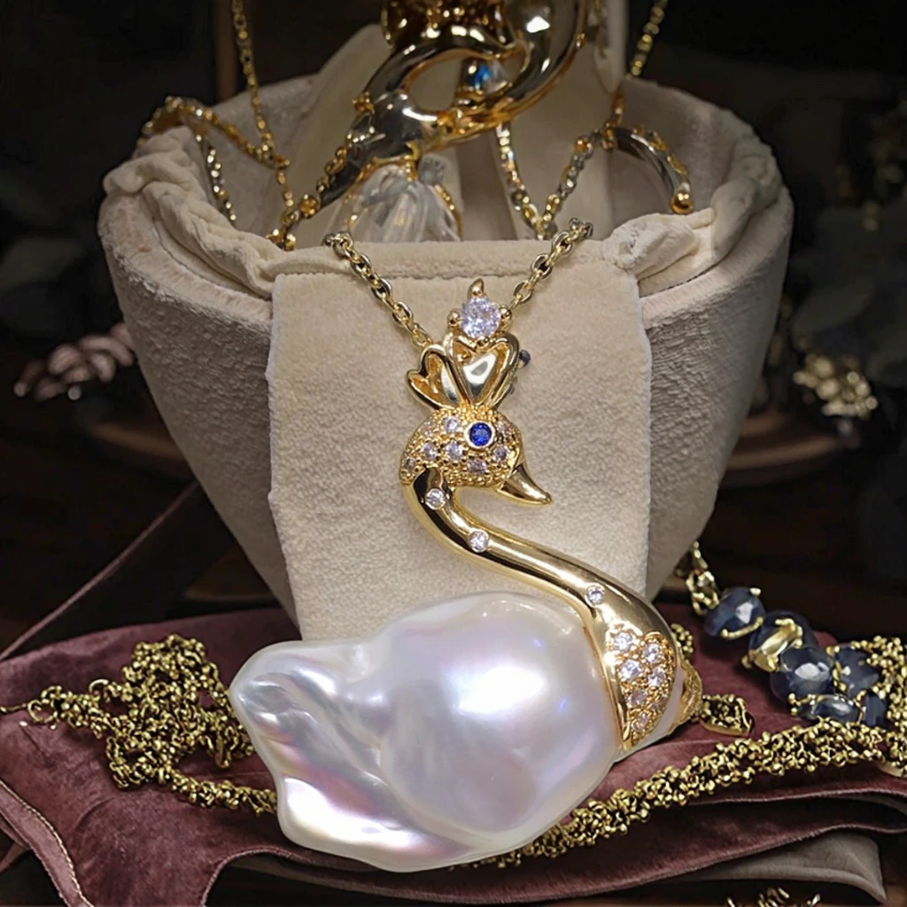 YOB Swan Pearl Large Baroque Natural Freshwater Necklace with Aurora Colorful Fishtail Pendant