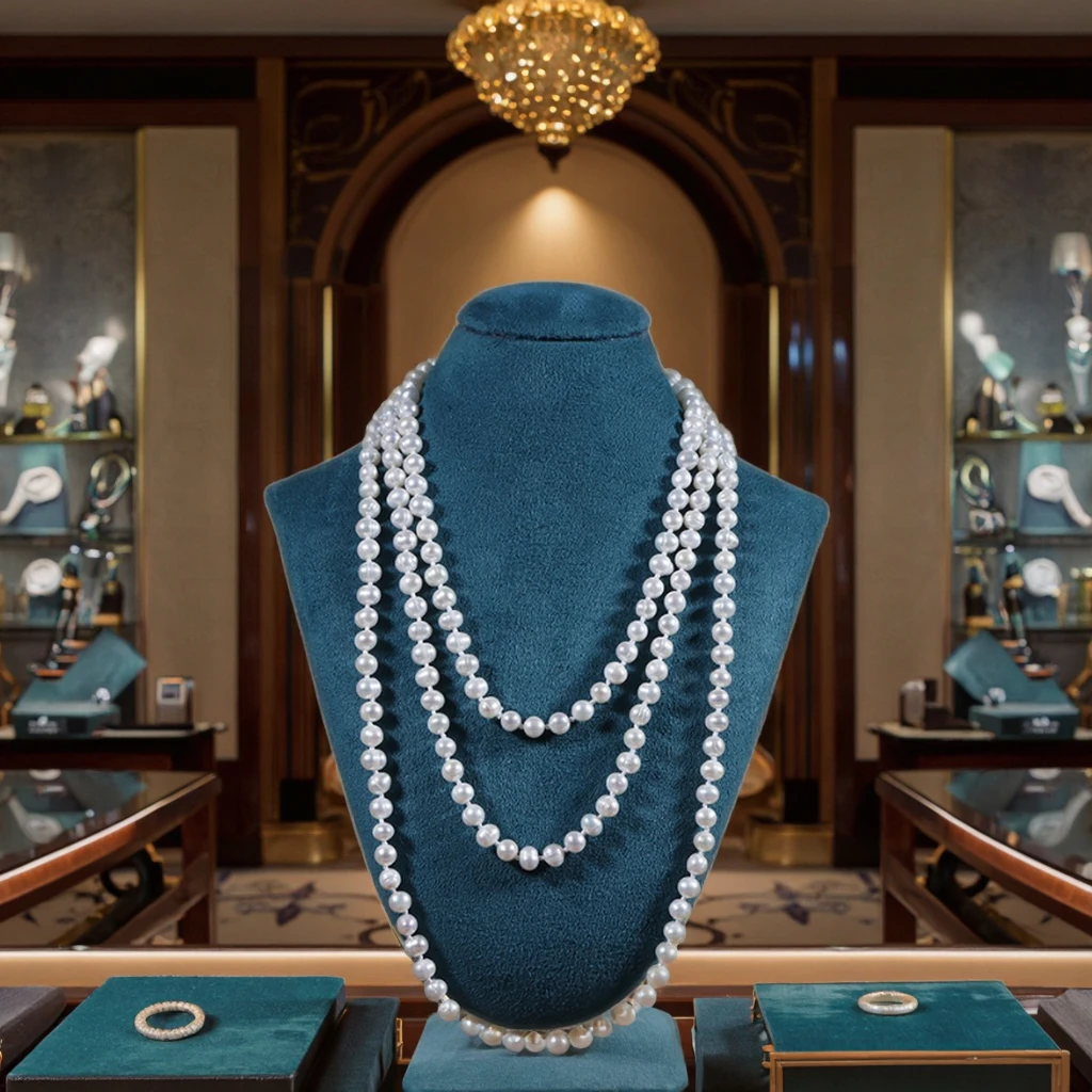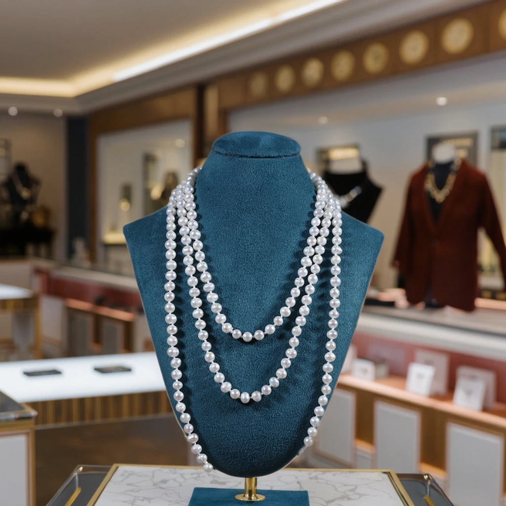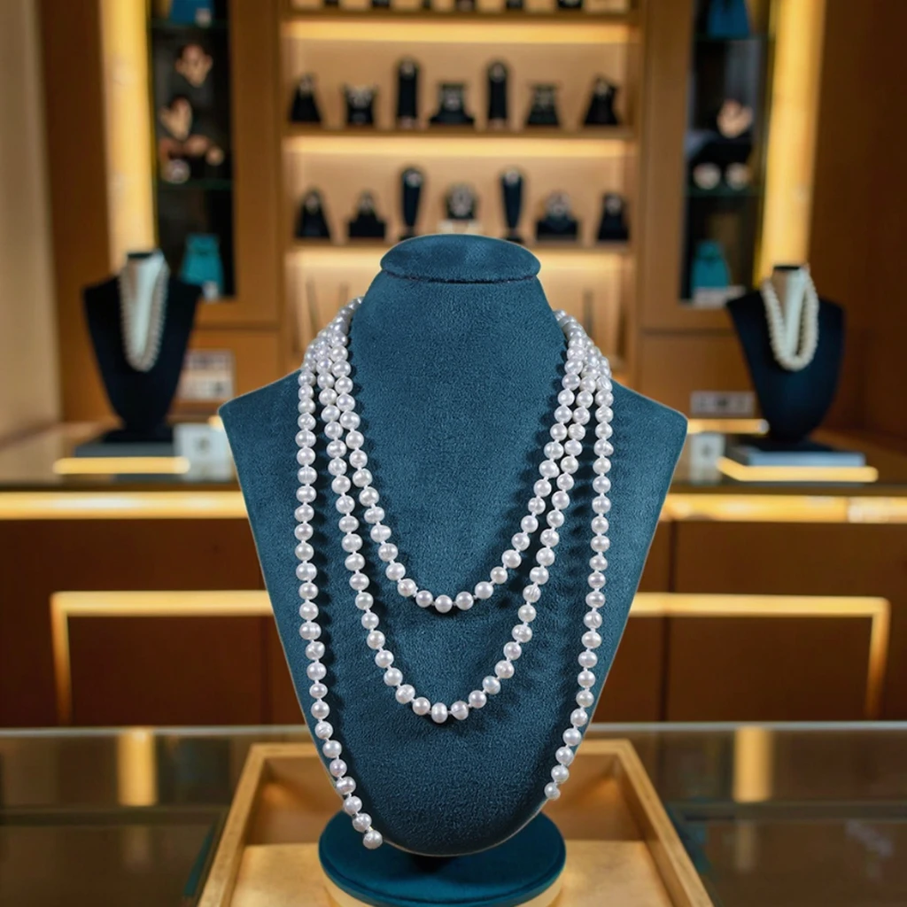 YOB 6-7mm Platinum Plated Grade Akoya Pearl Sweater Chain Classic Style 150cm Knot Necklace Spot Wholesale