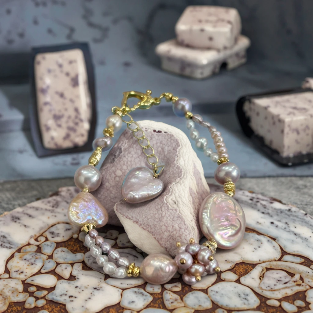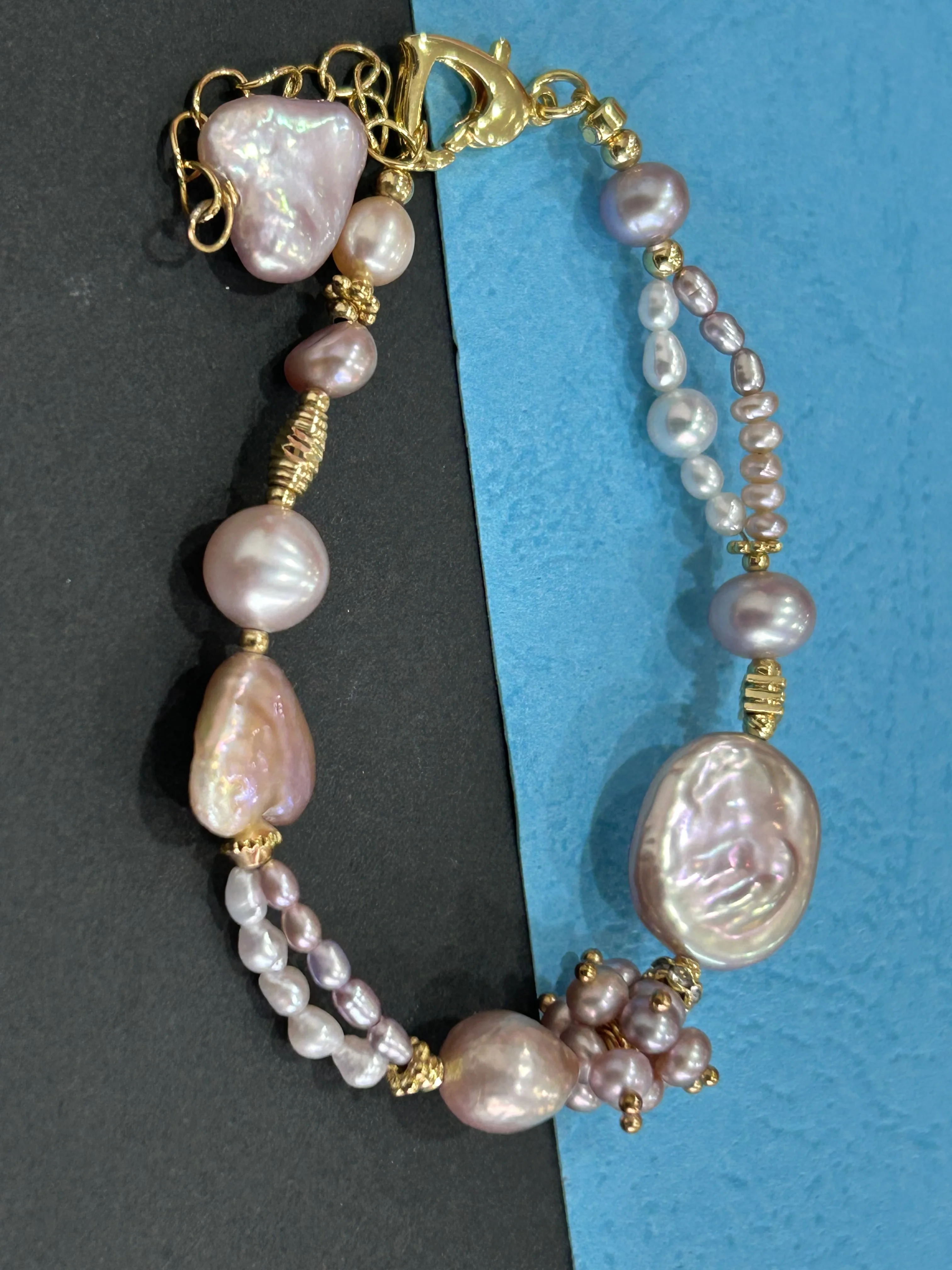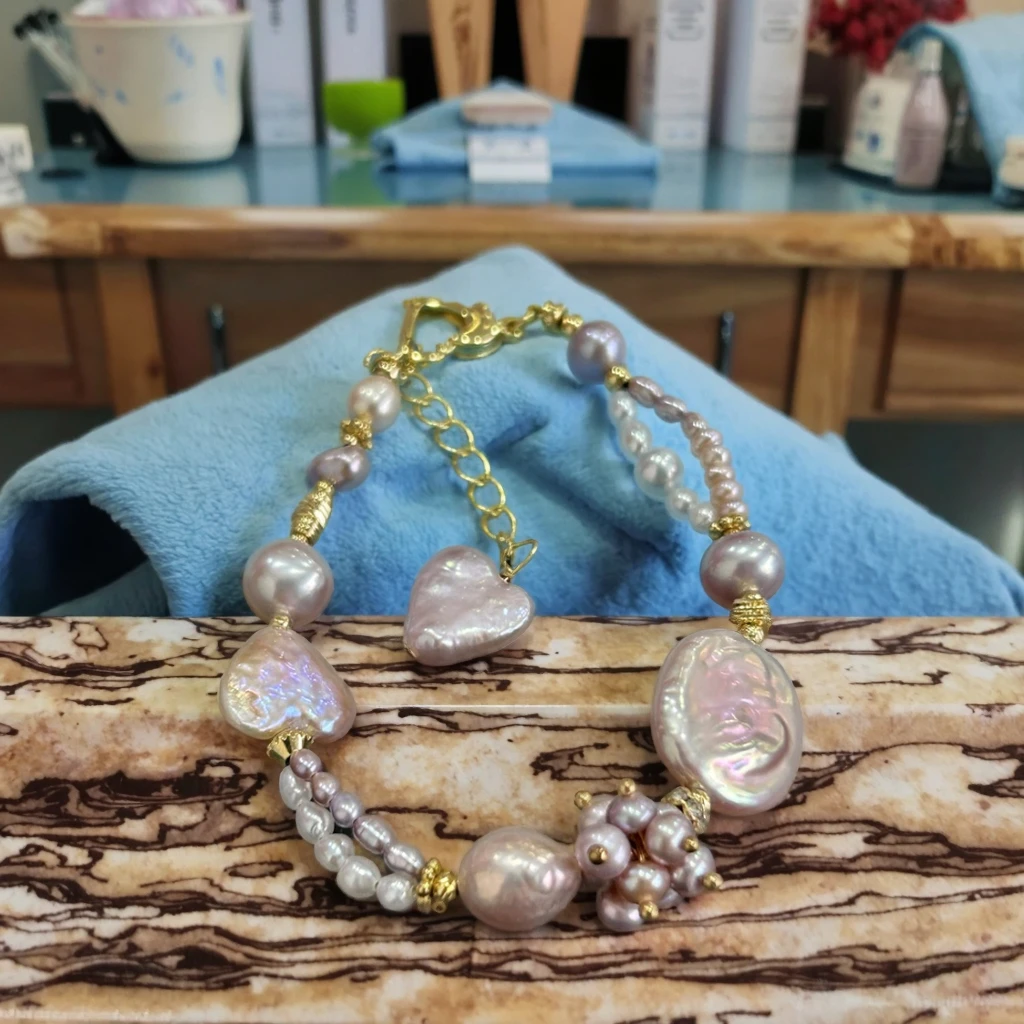 YOB New 9-10mm+12-13mm Button Baroque Pearl Bracelet Gold Plated Grade Women's Trendy Jewelry