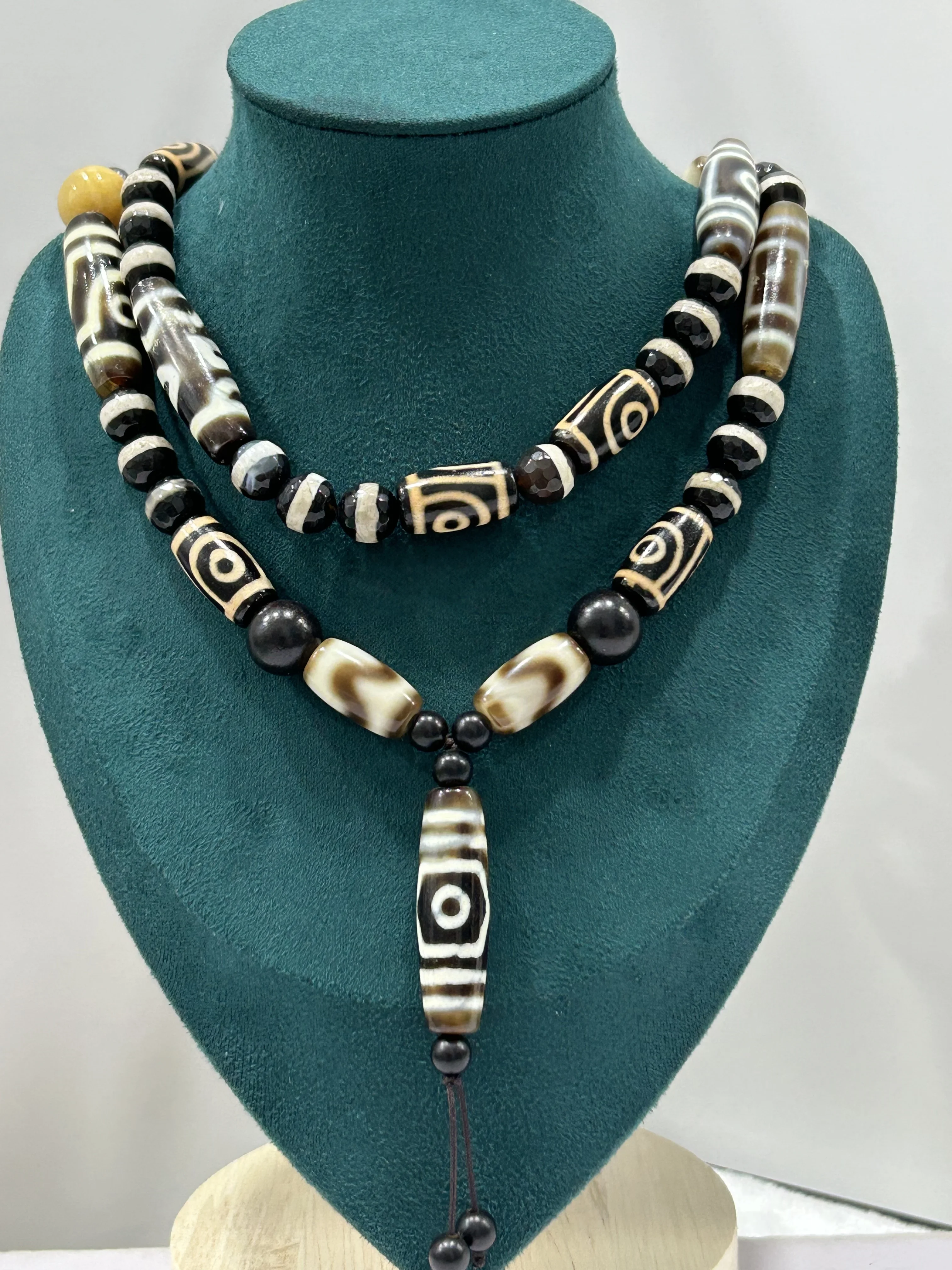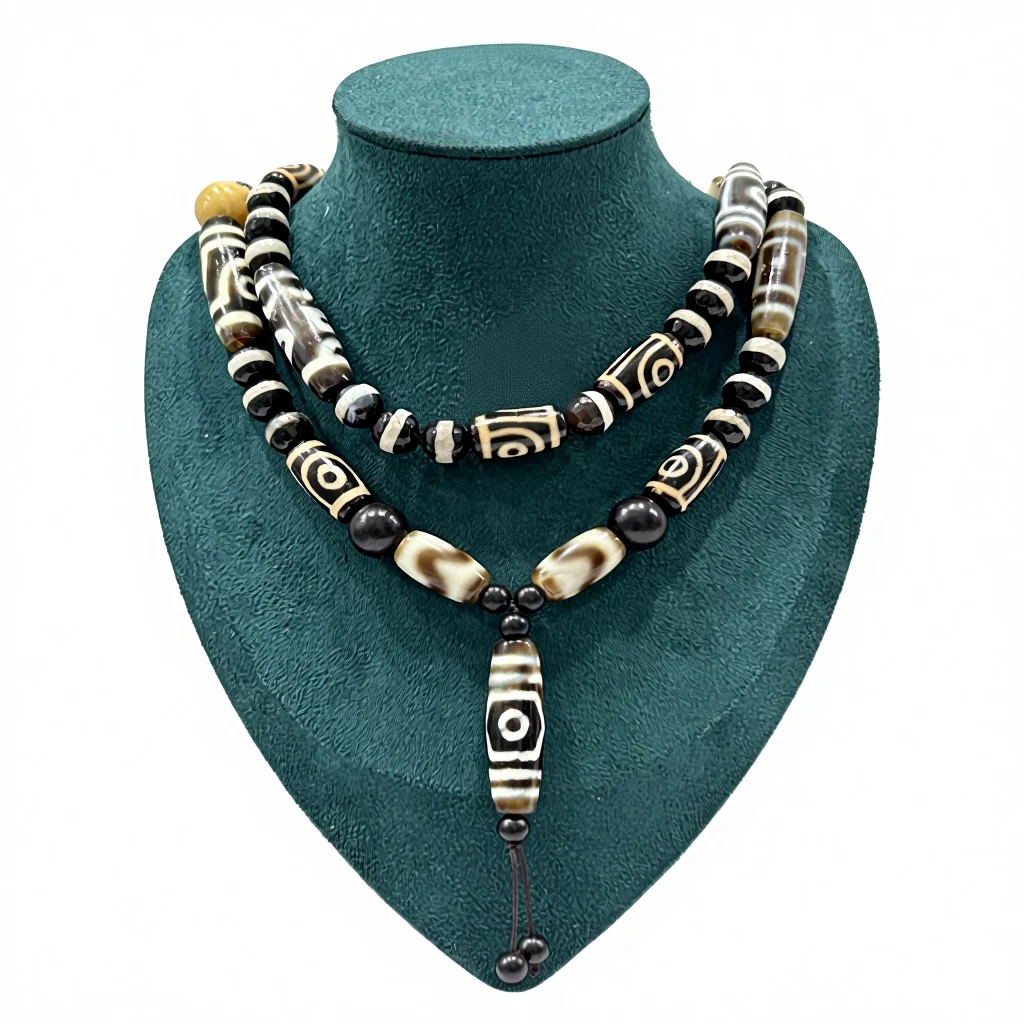 YOB Wholesale High Quality Stone Necklace 8mm Black Agate Square Lava Stone Beaded Pendant Wedding Party Children's Gift