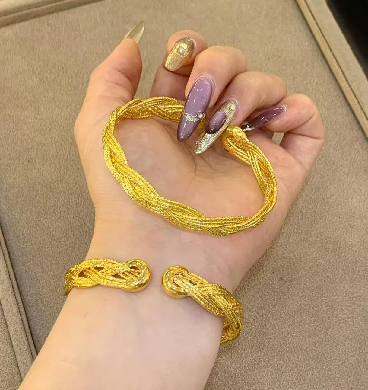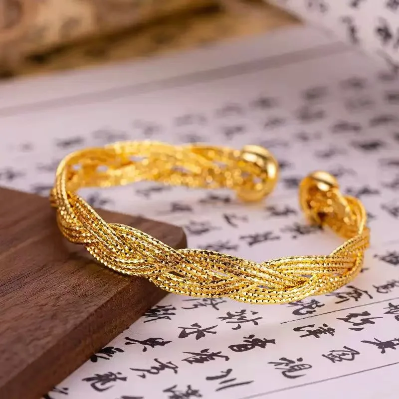 2026 Personalized Retro 18K Gold Plated Zinc Alloy Circling Setting Geometric Open Bangle for Engagement Women's