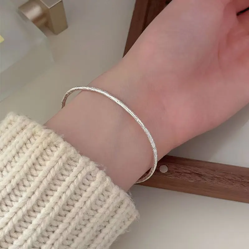 925 Sterling Silver Concave Convex Cuff Bangles 3.5mm Width Trendy Style Women's Party Wedding Fine Jewelry Gift Idea Micro