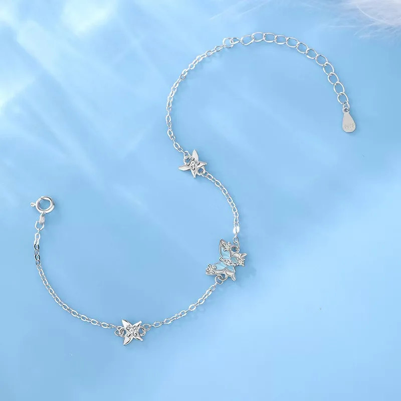925 Sterling Silver Fine Chain & Link Bracelet 5A Zircon Blue Crystal Stylish Trendy Rhodium Plated Finish Women's Party Gift