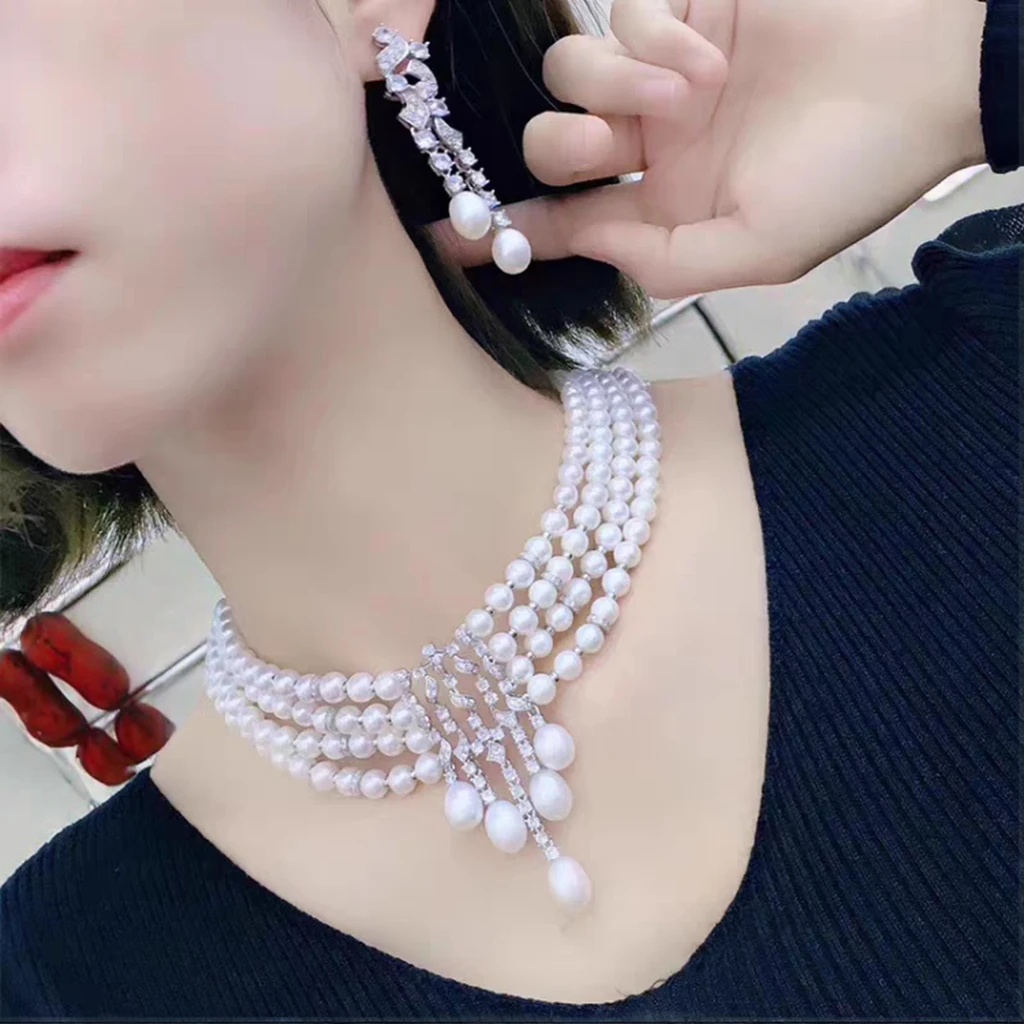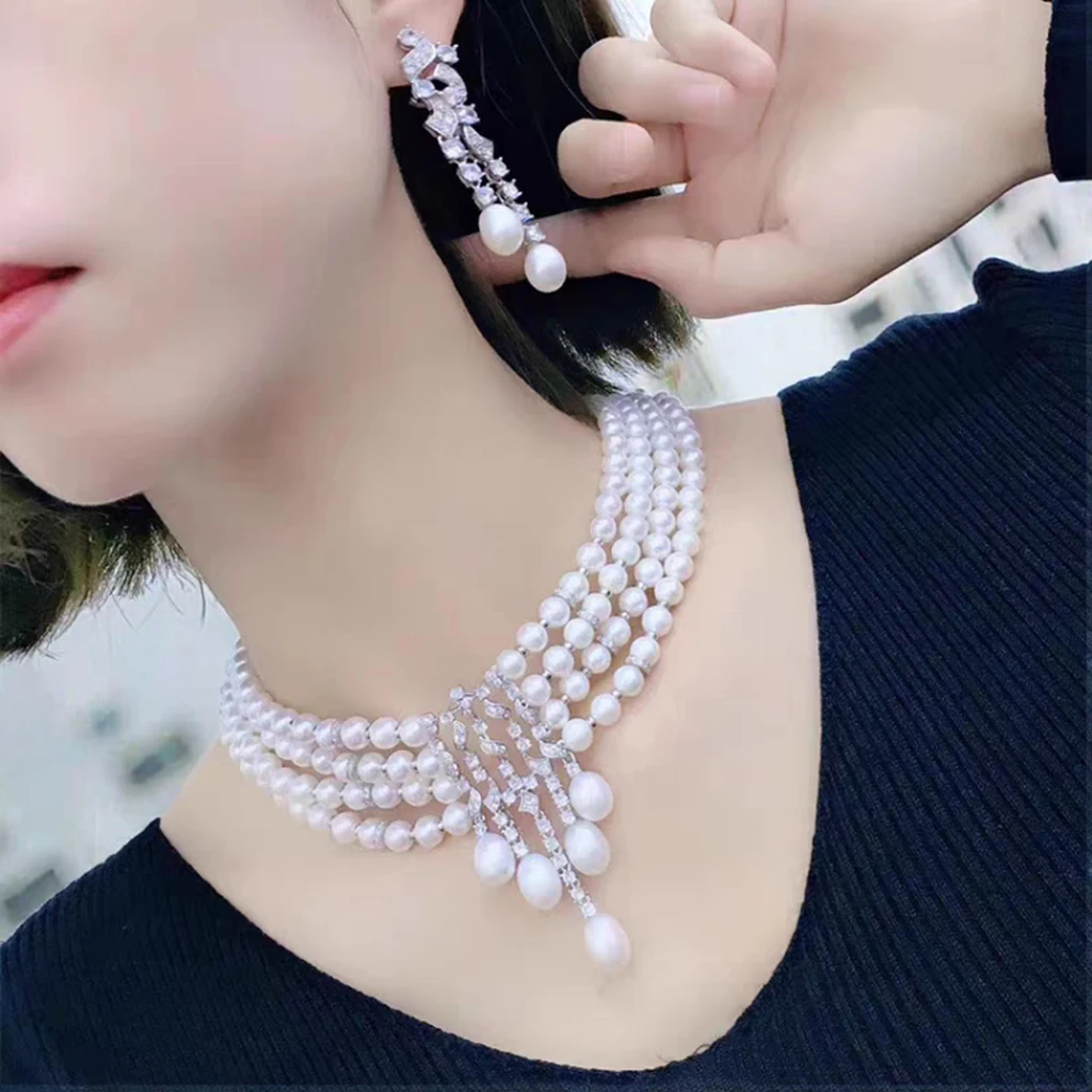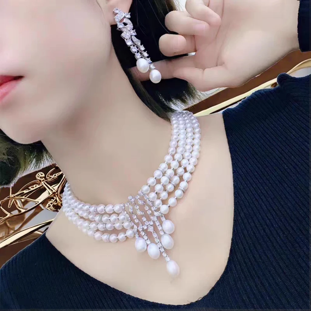 YOB Natural Pearl Necklace Fine Floral Buckle, Round Pearl Necklace Chain, Women's Gift