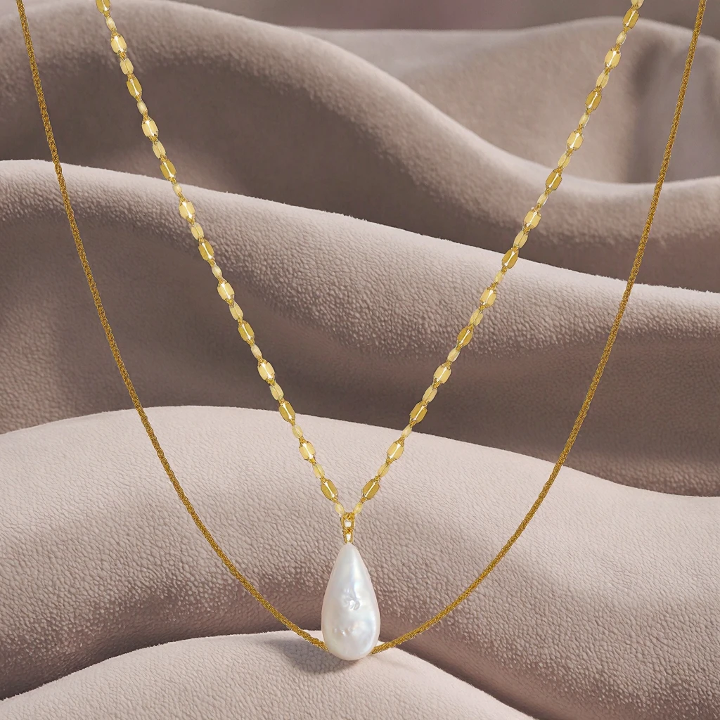 For GPN15 Double Layer Necklace 925 Sterling Silver Box Chain Baroque Shape AAAA Grade White Mabe Pearl Pendants Gold Plated