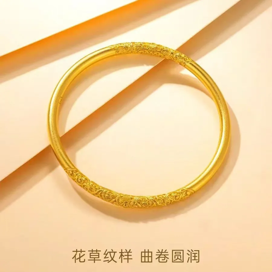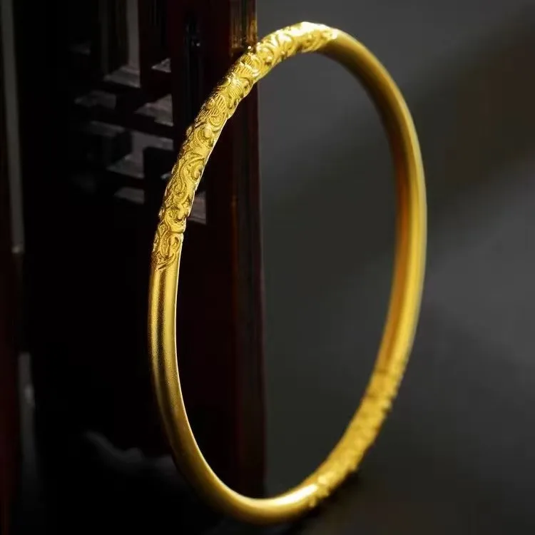 2026 New 18k Gold Plated Ancient Method Circle Grass Pattern Sand Gold Vintage Anniversary Women's Bracelet