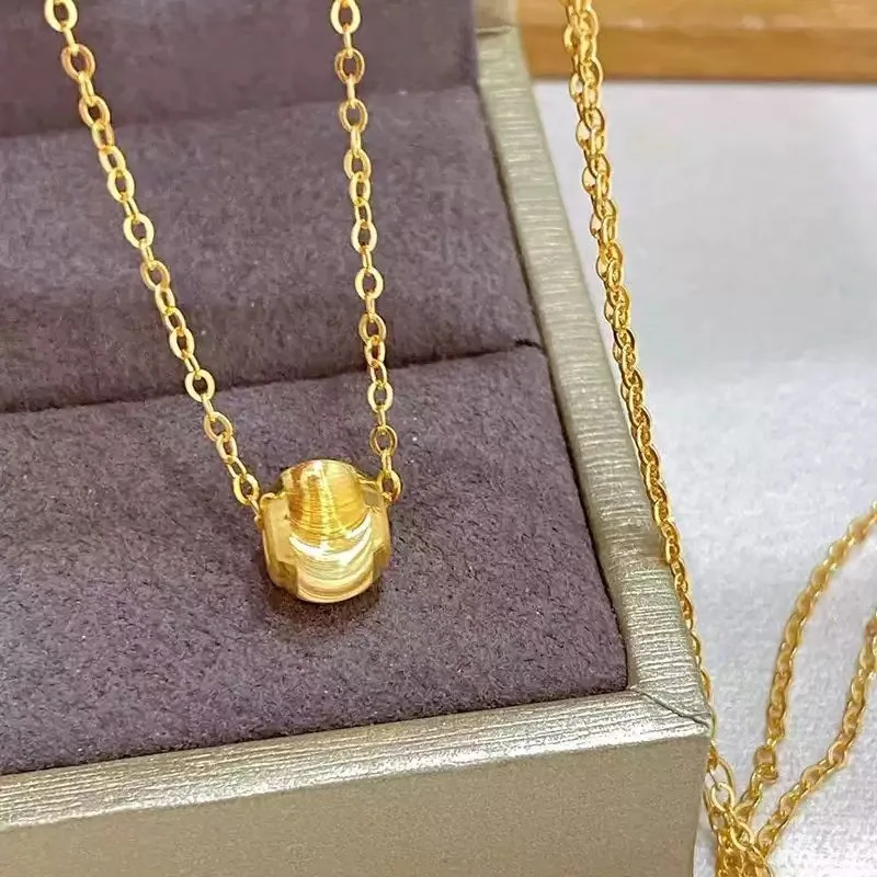Internet Celebrity 18K Gold Plated Vintage Zinc Alloy Cat Eye Necklace Link Chain Collarbone Design Gift for Girlfriend