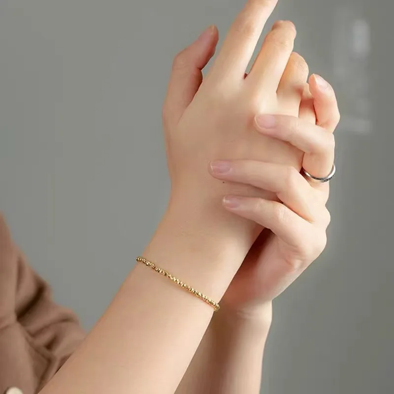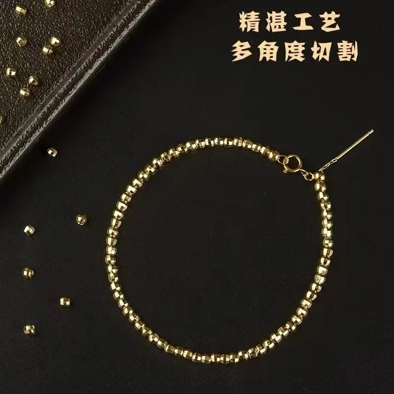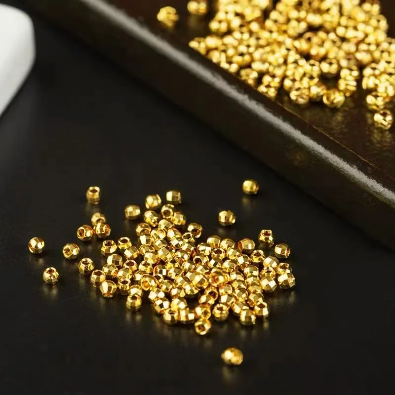 Wholesale 18K Gold Plated Round Beads Jewelry Accessories for DIY Bracelet Necklace Ankle Chain Production Bag Packaging