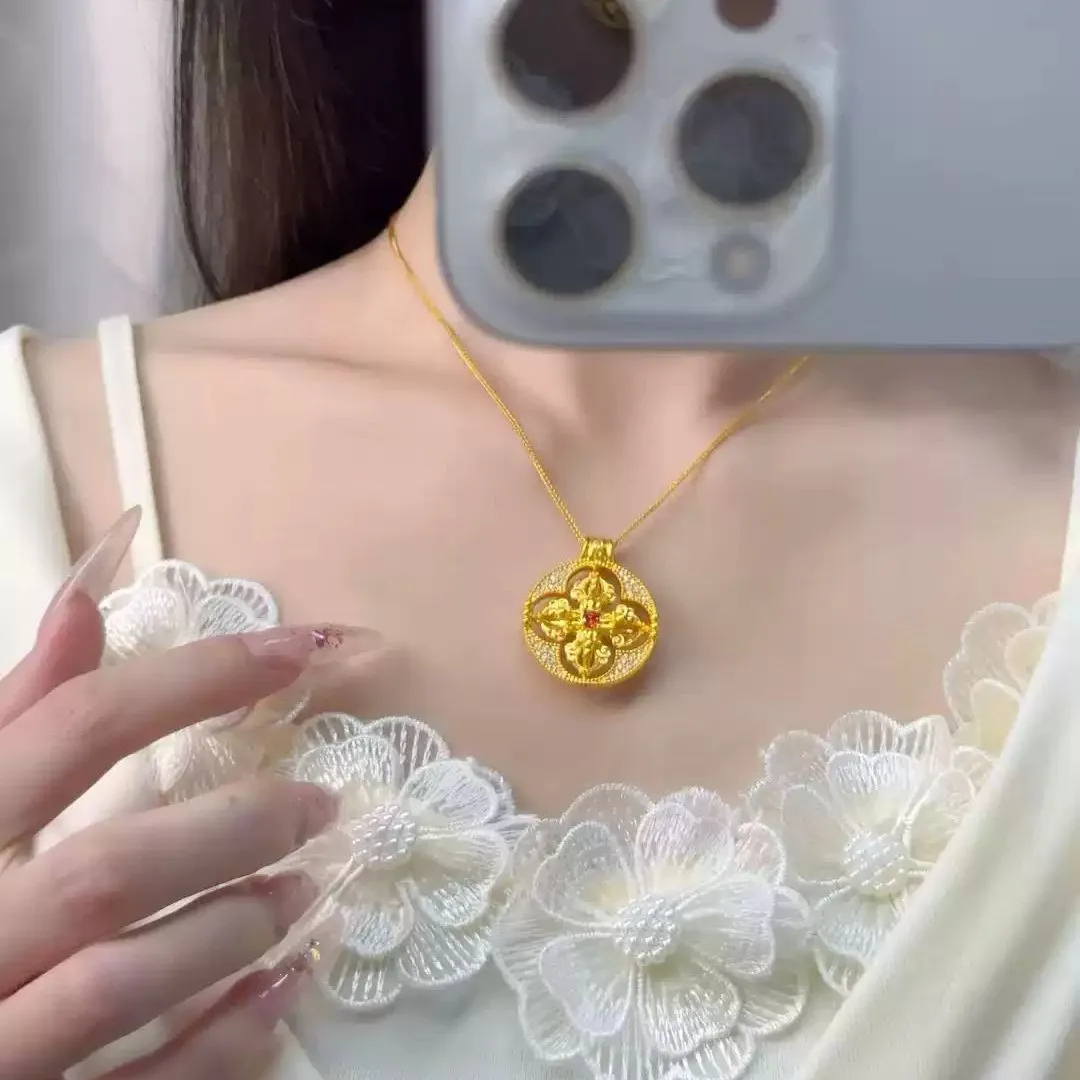 Retro Luxury Trendy Personalized Zircon Pendant Necklace 18K Gold Plated Women's Anniversary Boutique Jewelry