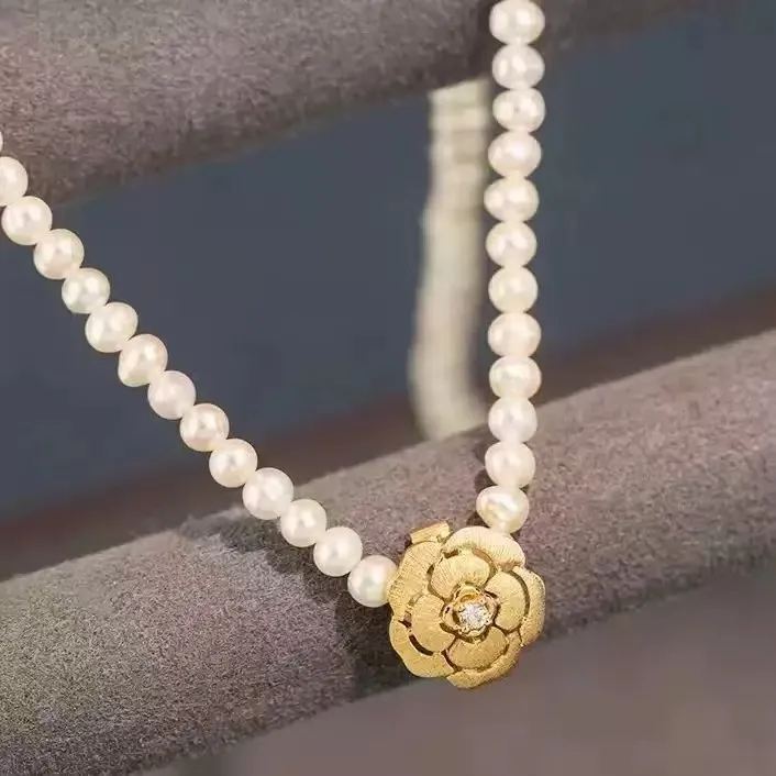 18K Gold Plated Camellia Flower Simple Trendy Pendant Fashionable High End Women's Anniversary Jewelry
