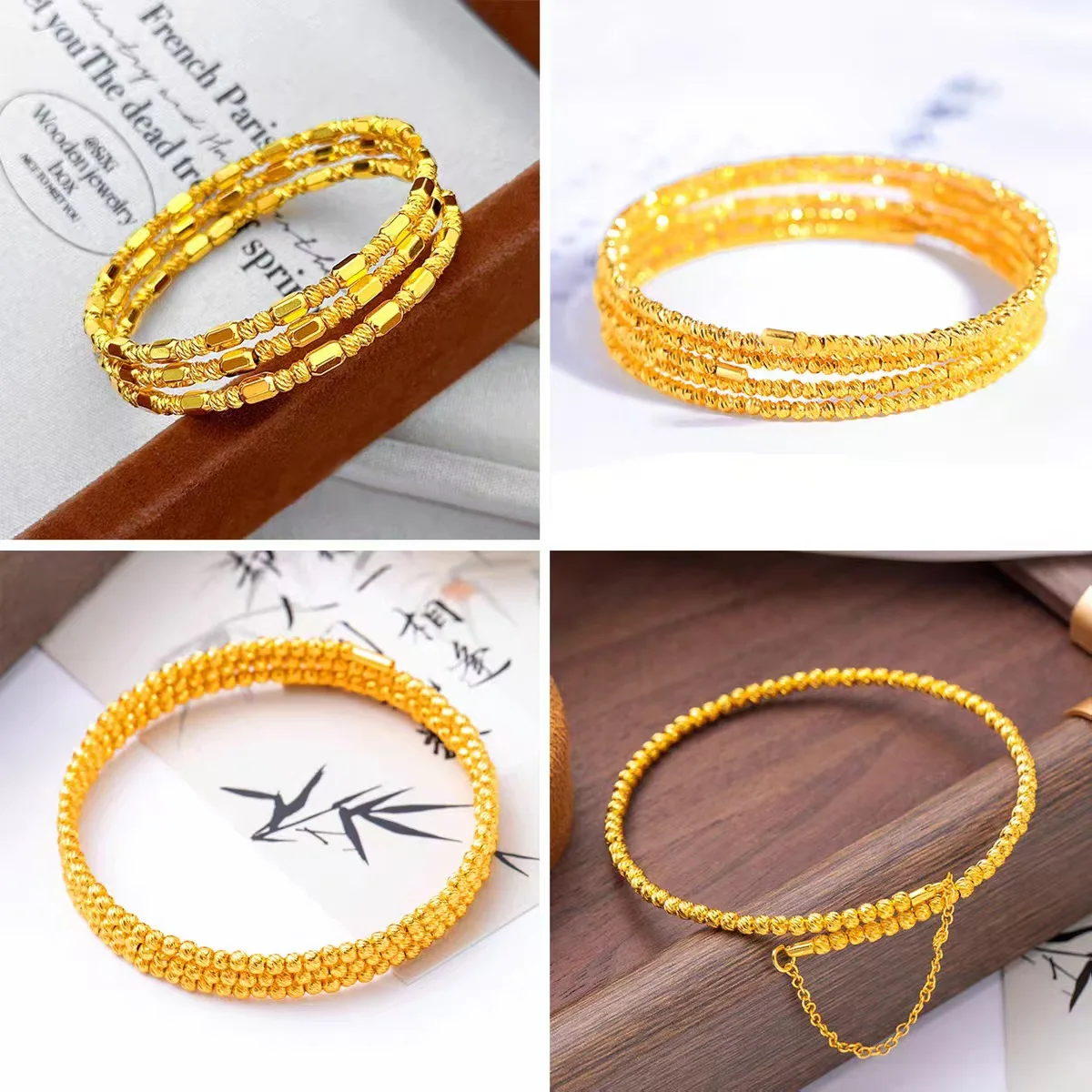 Wholesale Three Lives Three Generations Explosive Flash Bangles Sand Gold Three Circle Scalable Memory Elastic Women's 18K Gold