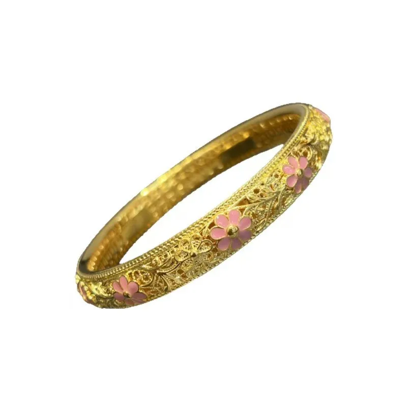 Luxury Fashion Au750 18K Gold Plated Vintage Women's Cherry Blossom Boutique Jewelry Gift Bracelet