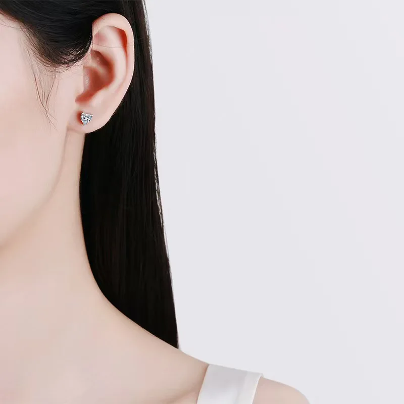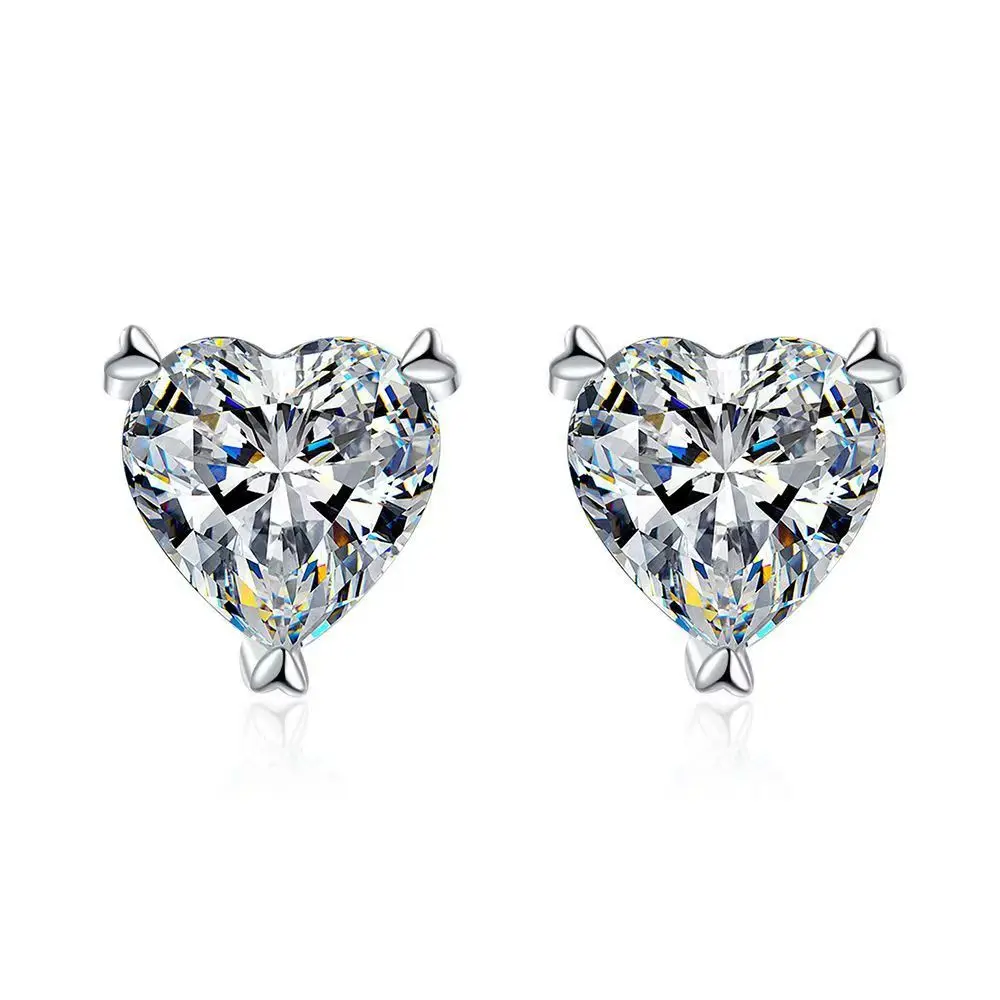 Heart Cut Solitaire Moissanite Stud Earrings 925 Sterling Silver Rhodium Plated Third Party Certified for Women