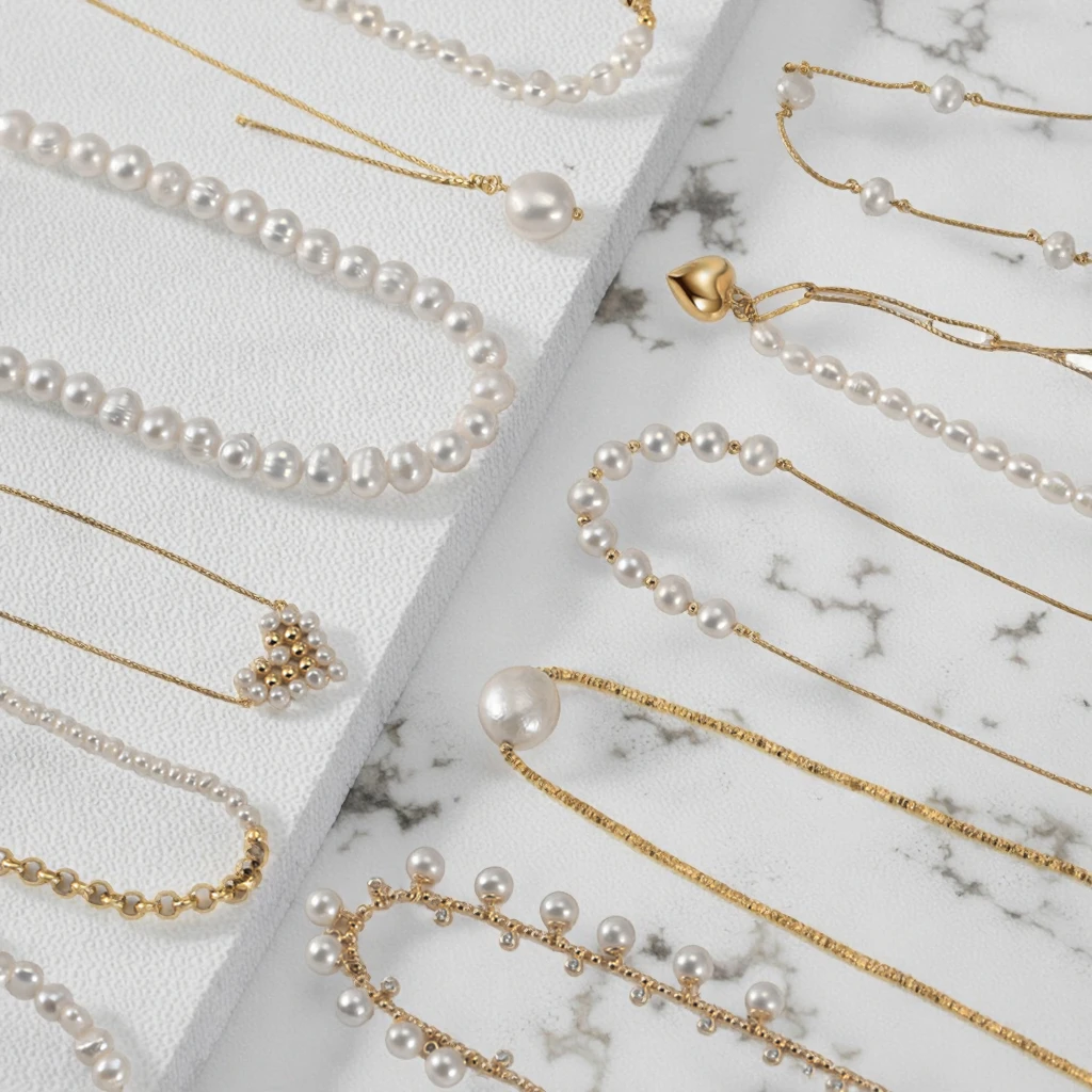 For GPN-1 Customised 925 Sterling Silver Beaded Freshwater Pearl AAAA Grade Vintage Style Necklace with Rhodium Gold Plating