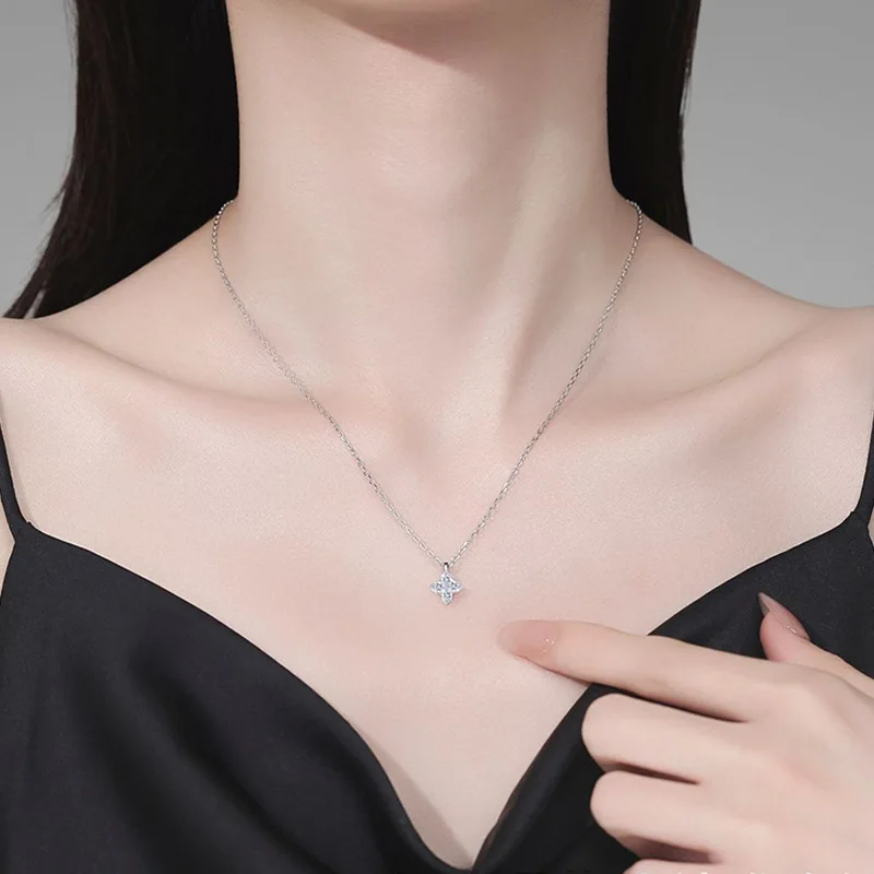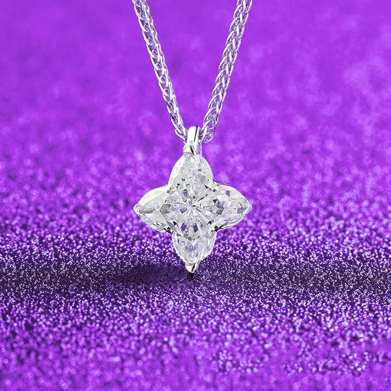 TOP New Arrival Silver 925 Original Platinum Plated Water-wave Chain 2 Carat Brilliant Cut Moissanite Blossom Pendant Necklace