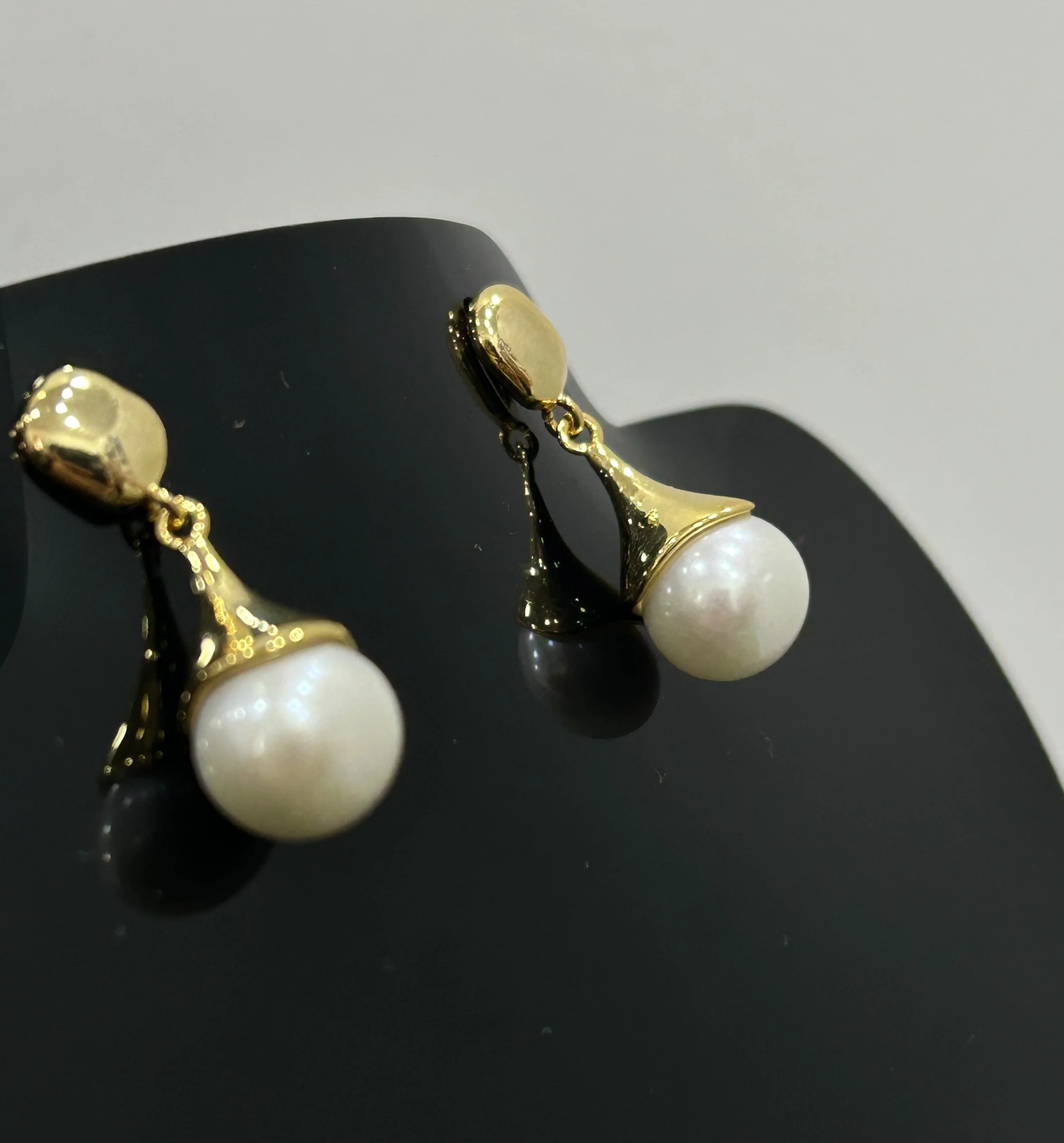 Hot Selling 18K Gold-plated Freshwater Pearl Earrings, Round Pearl Earrings, Luxurious and Exquisite Women's Jewelry