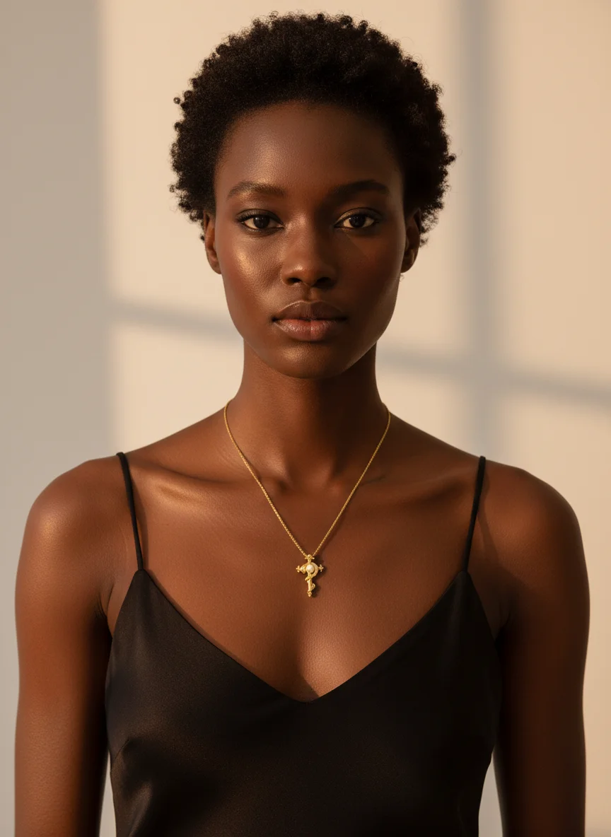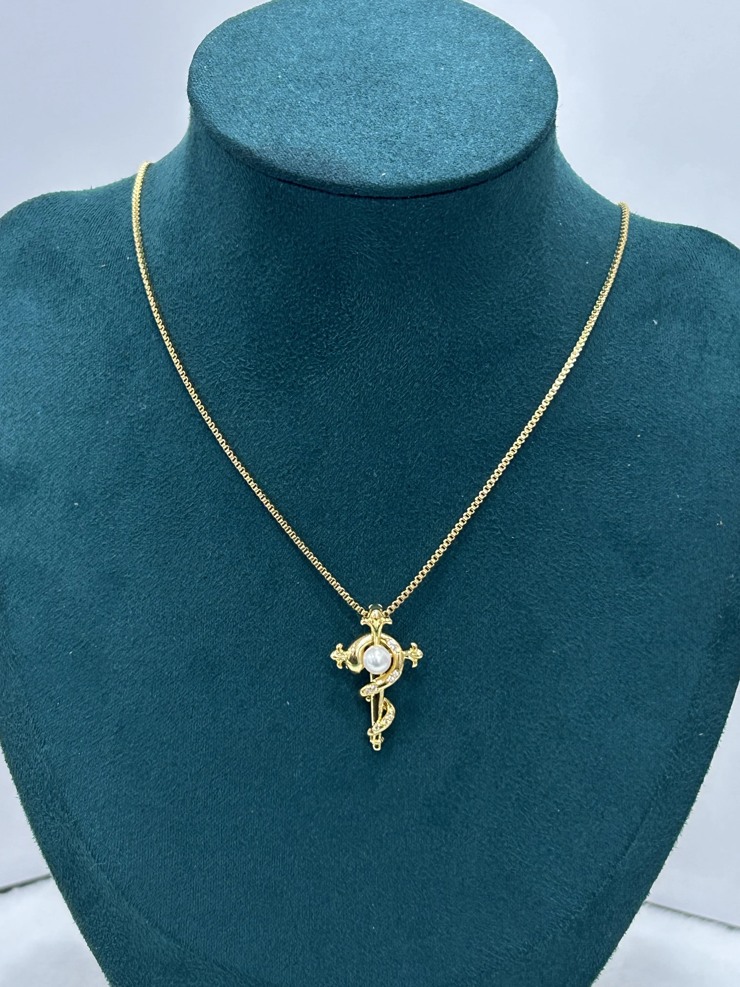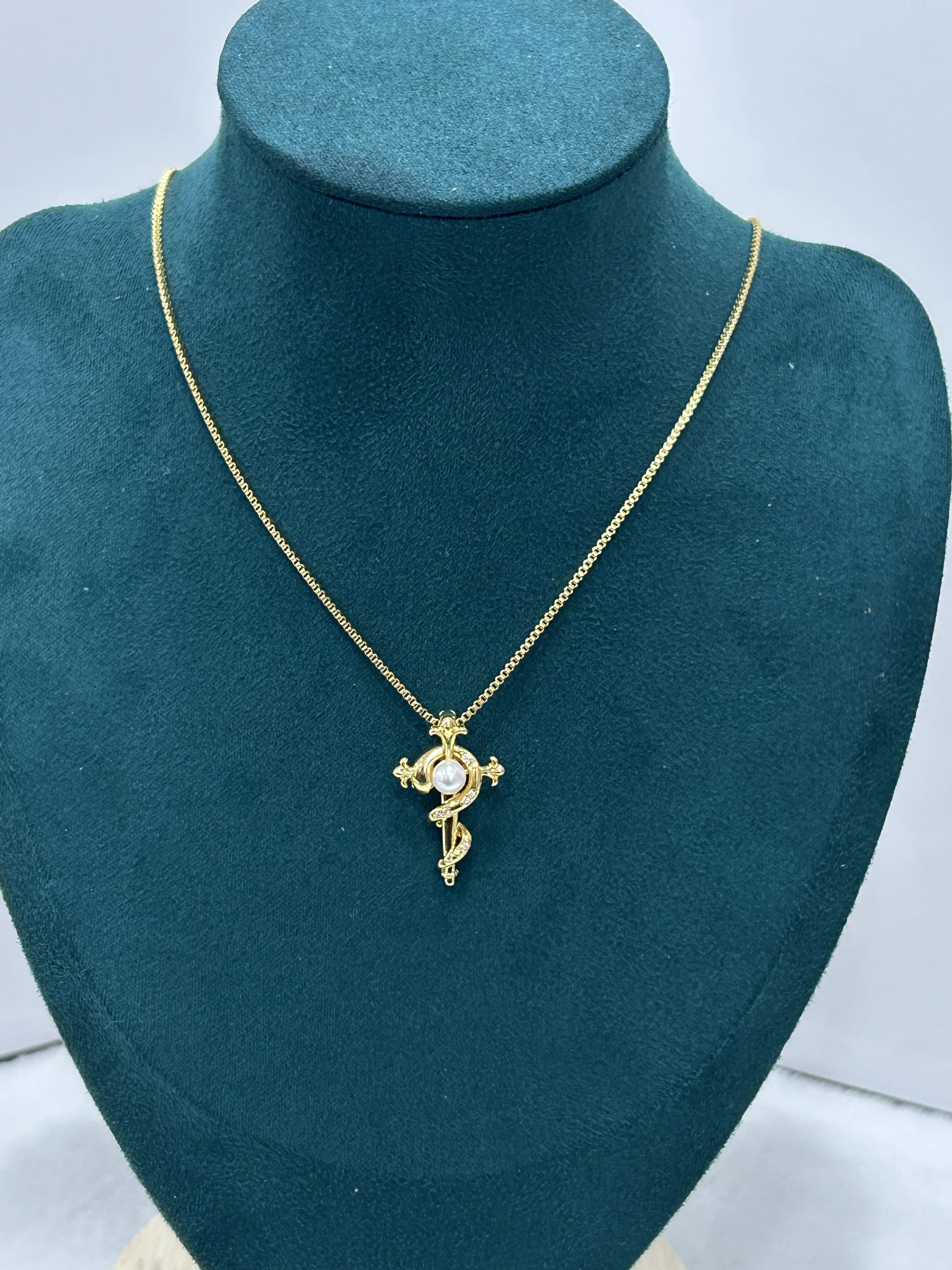Natural Freshwater Pearl Simple Fashion Style Jewelry Pendant Necklace Cross 18k Gold-plated Unisex