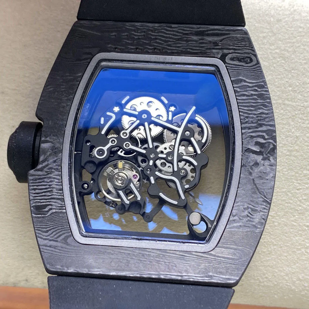 2026 New Selling Black Carbon Fiber Case Men's Mechanical Wristwatch with Silicone Strap - Business Casual Trendy Sports Watch