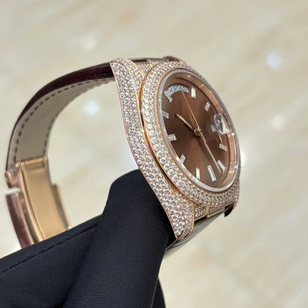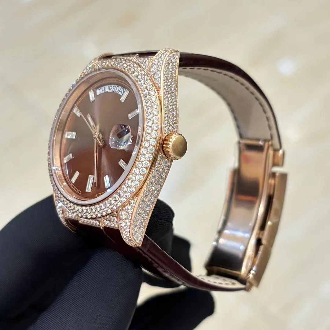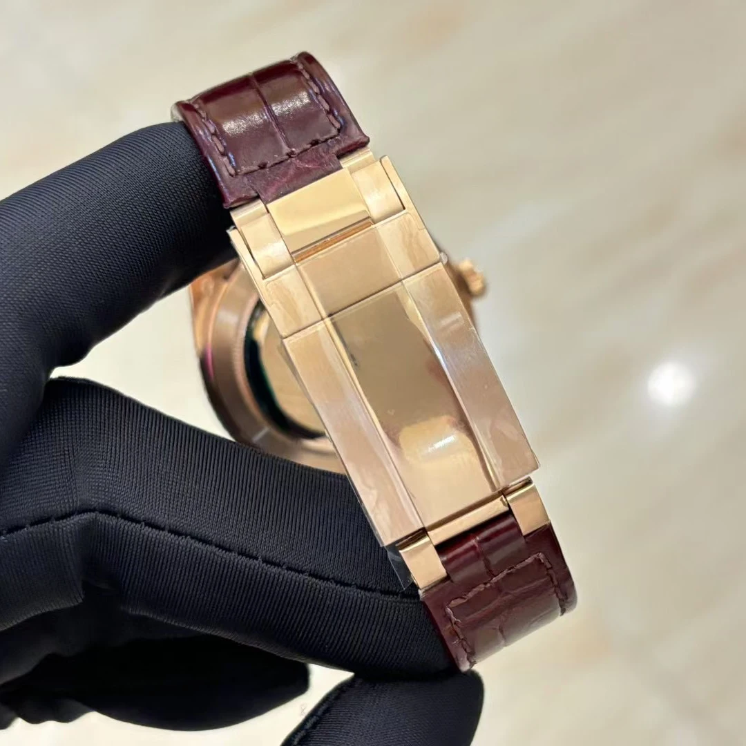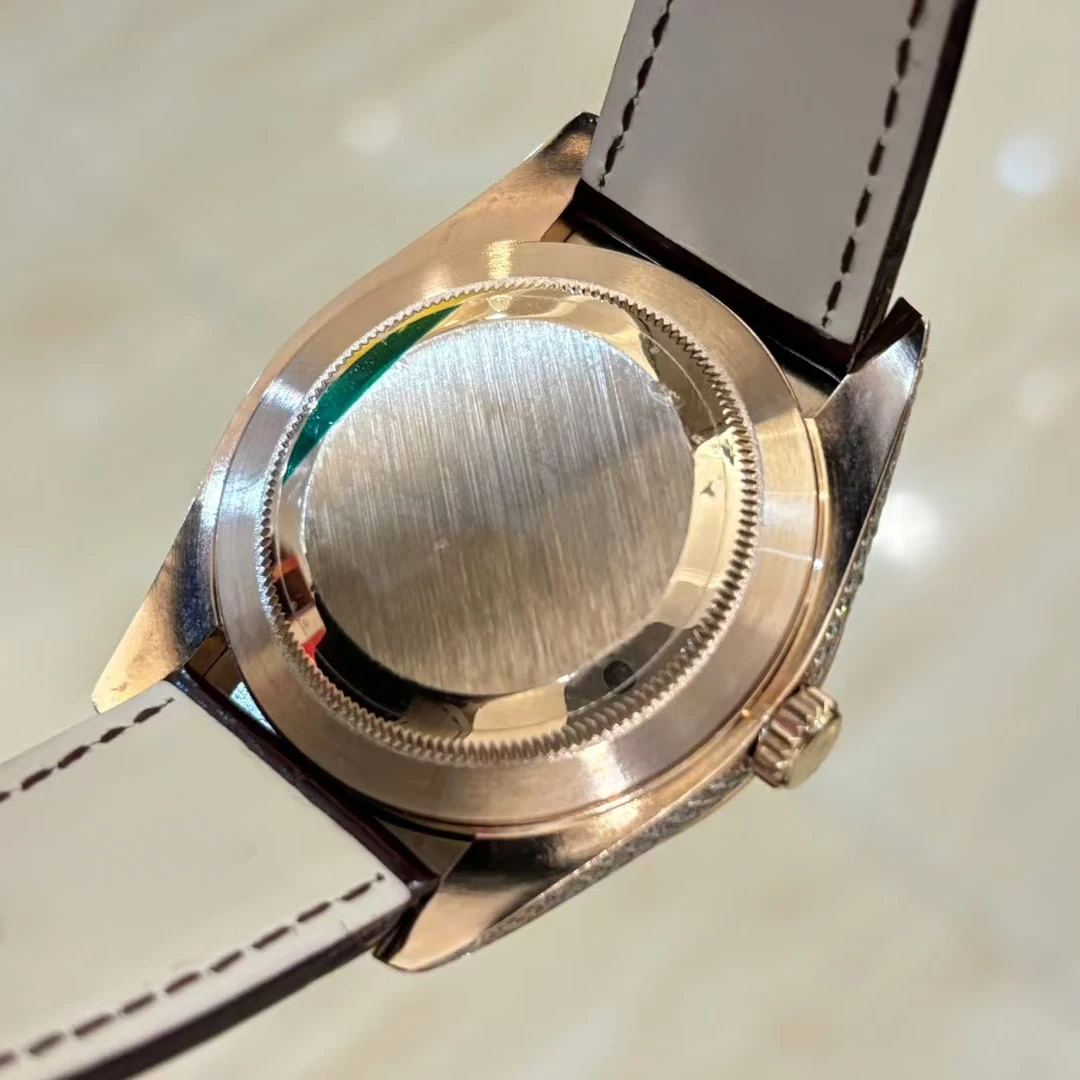 Round Inlaid Men's Mechanical Watch Genuine Leather Strap 904L Stainless Steel case Business Casual Automatic Waterproof Watch