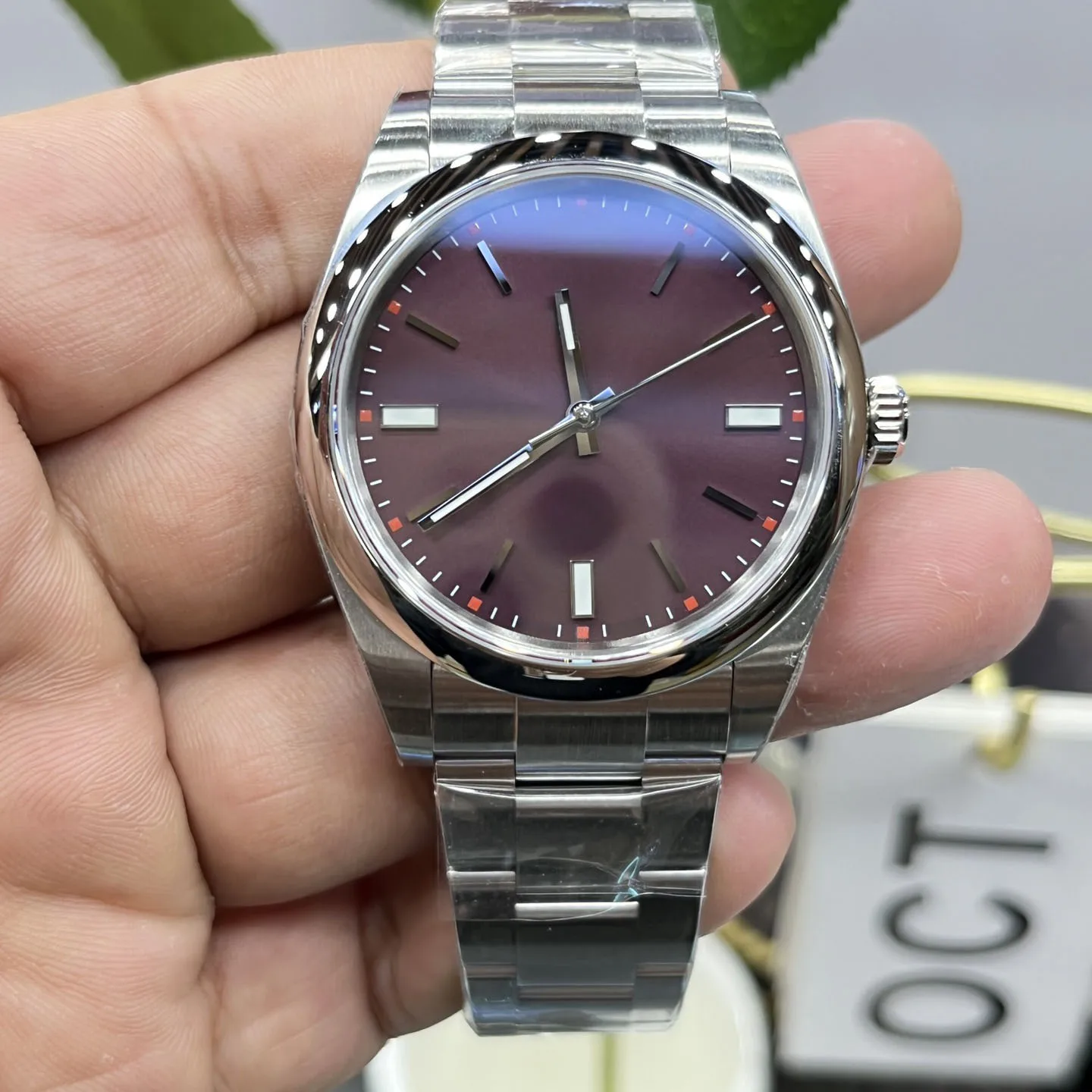 New Hot-selling purple Dial Men's Mechanical Watch39mm Diameter High-quality Stainless Steel Elegant Business Casual Retro Watch