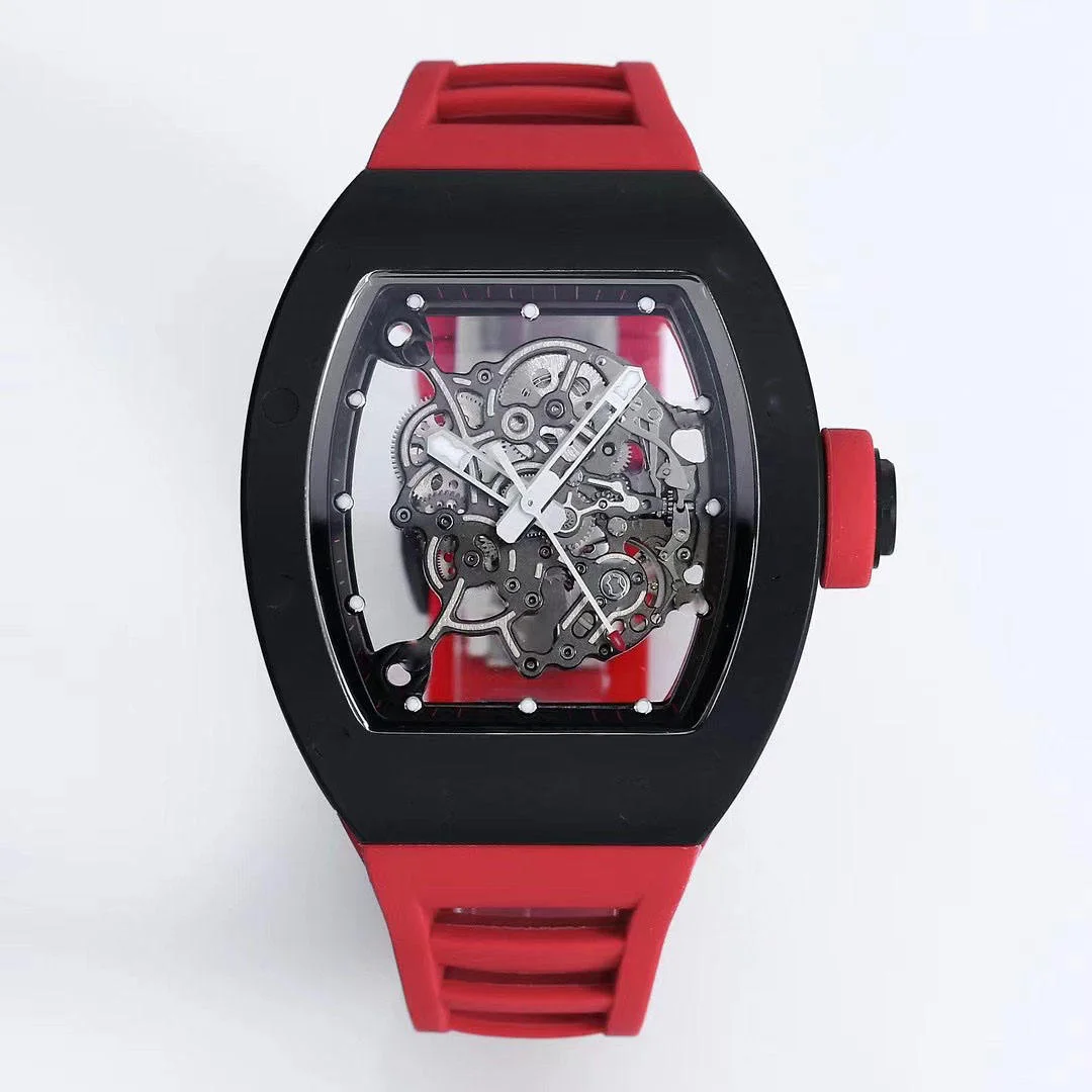 New Luxury Brand Designer Men's Mechanical Watch 13.5mm Thick Carbon Fiber Case Natural Rubber Strap Casual Sporty Trendy Watch