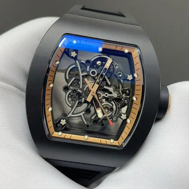 High-End Men's Business Mechanical Watch Ceramic Case Classic Skeleton Design Rubber Strap High-Quality Automatic Casual Watch