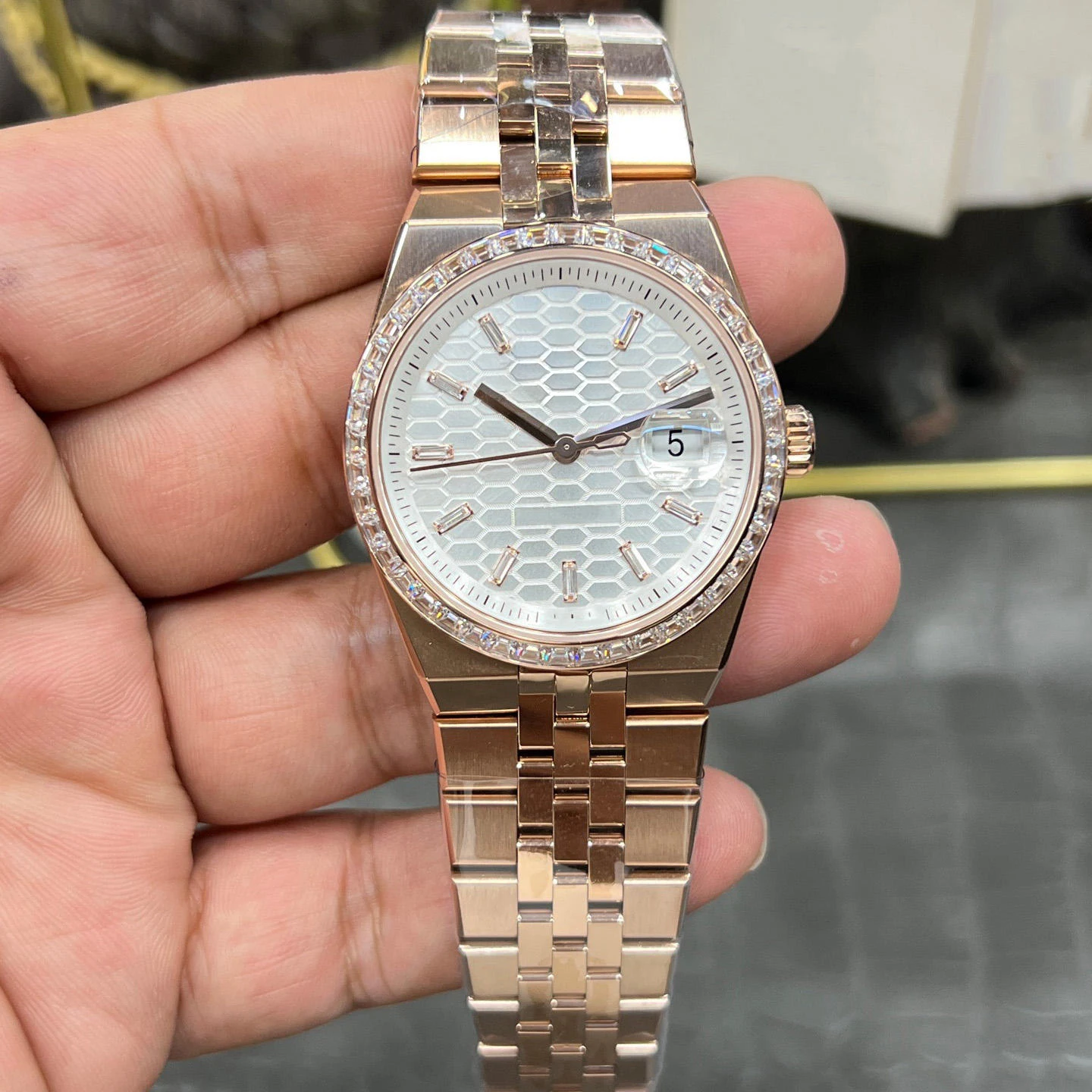 High-Quality Business Automatic Watch Calendar Water Resistance Classic Elegant Diamond-Set Moissanite Men's Mechanical Watches
