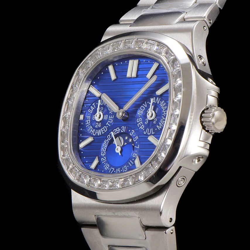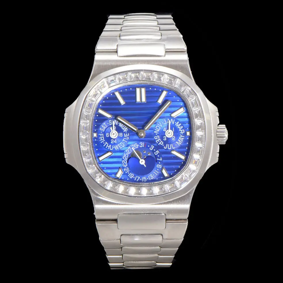 2026 New Hot Selling Blue Dial Watch with High-Quality Steel Strap Moon Phase Function Stylish Automatic Men's Mechanical Watch