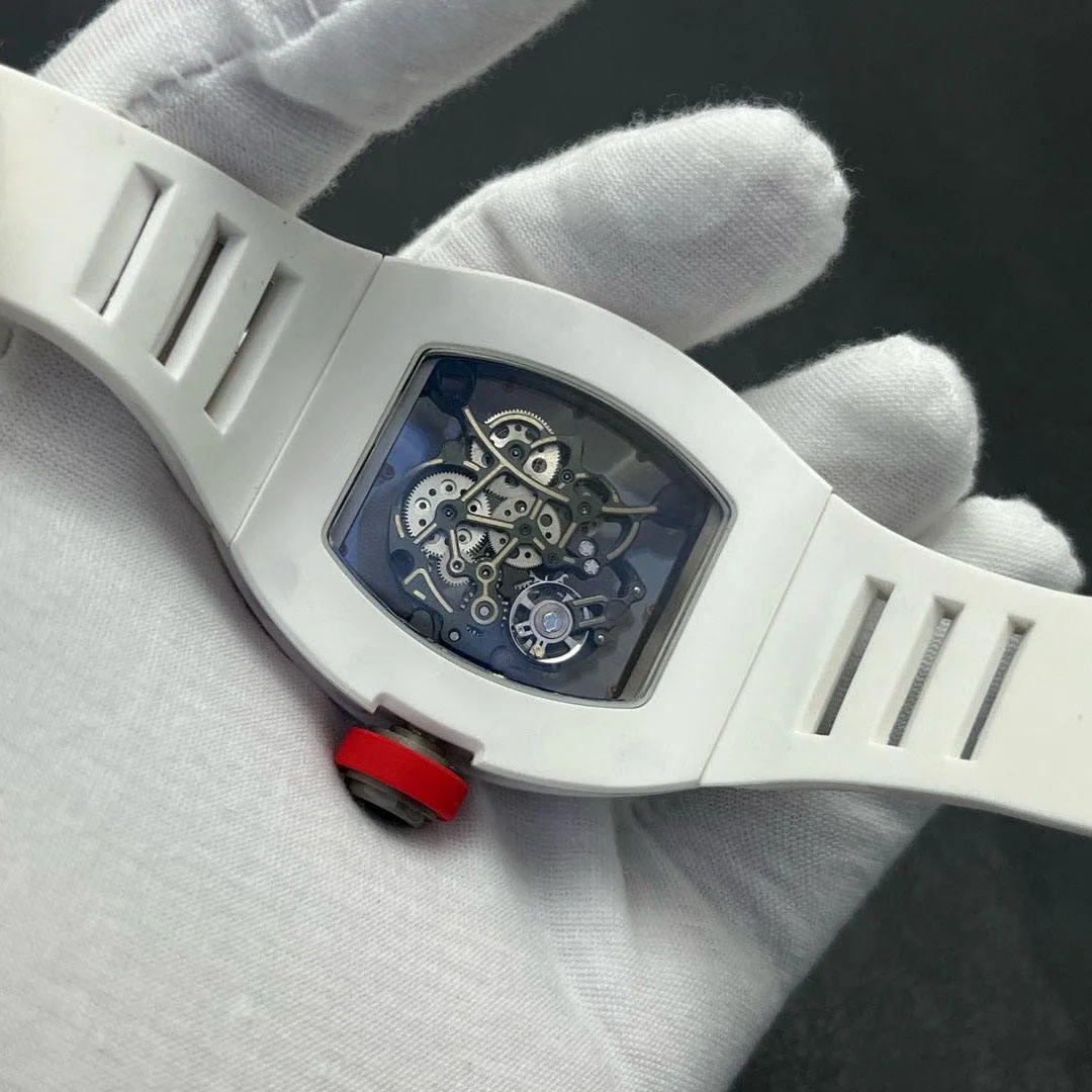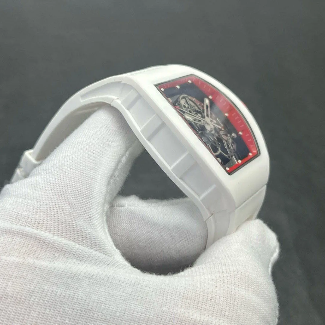 New High-End Business Sports Men's Mechanical Watch Designer Style White Ceramic Case Skeleton Waterproof Automatic Casual Watch