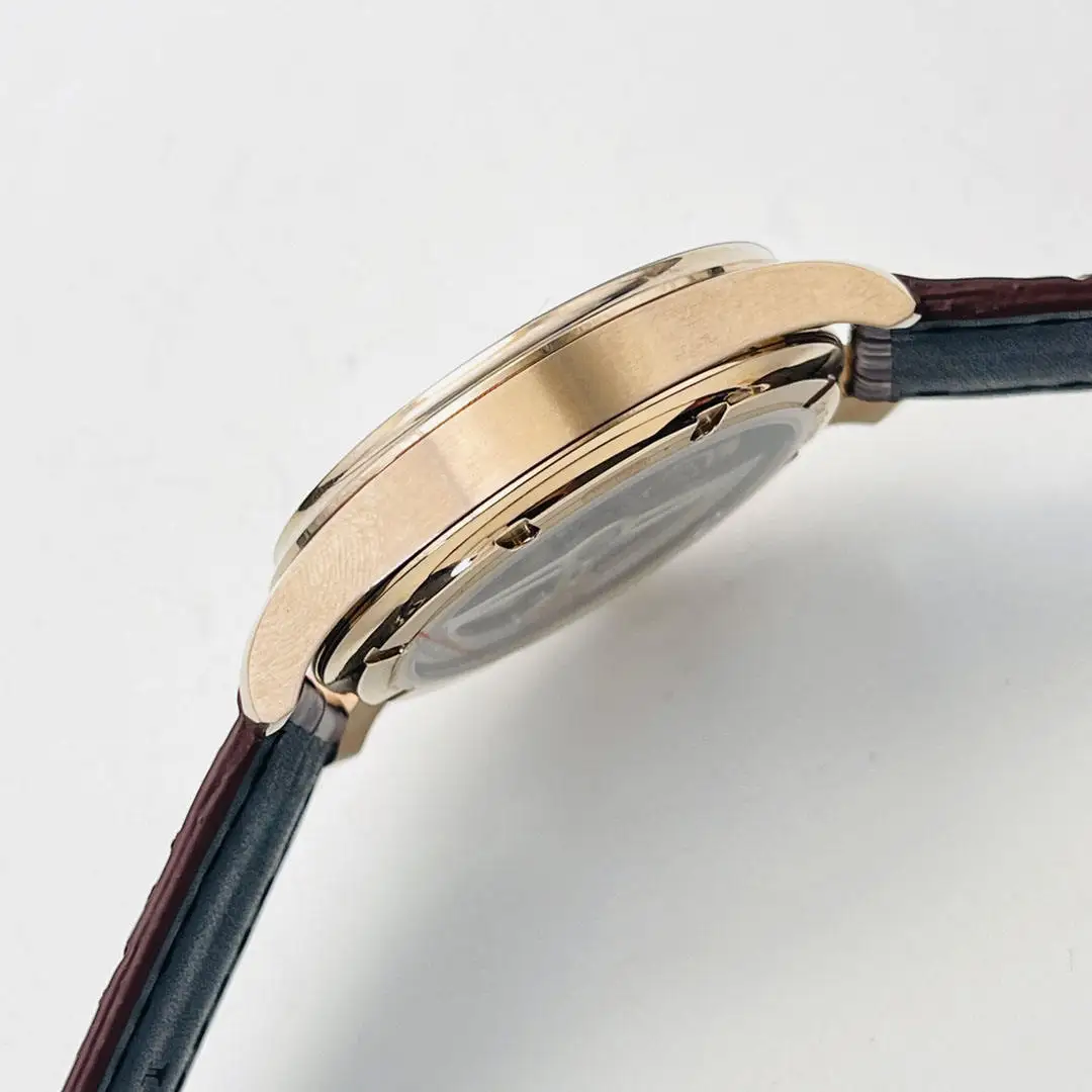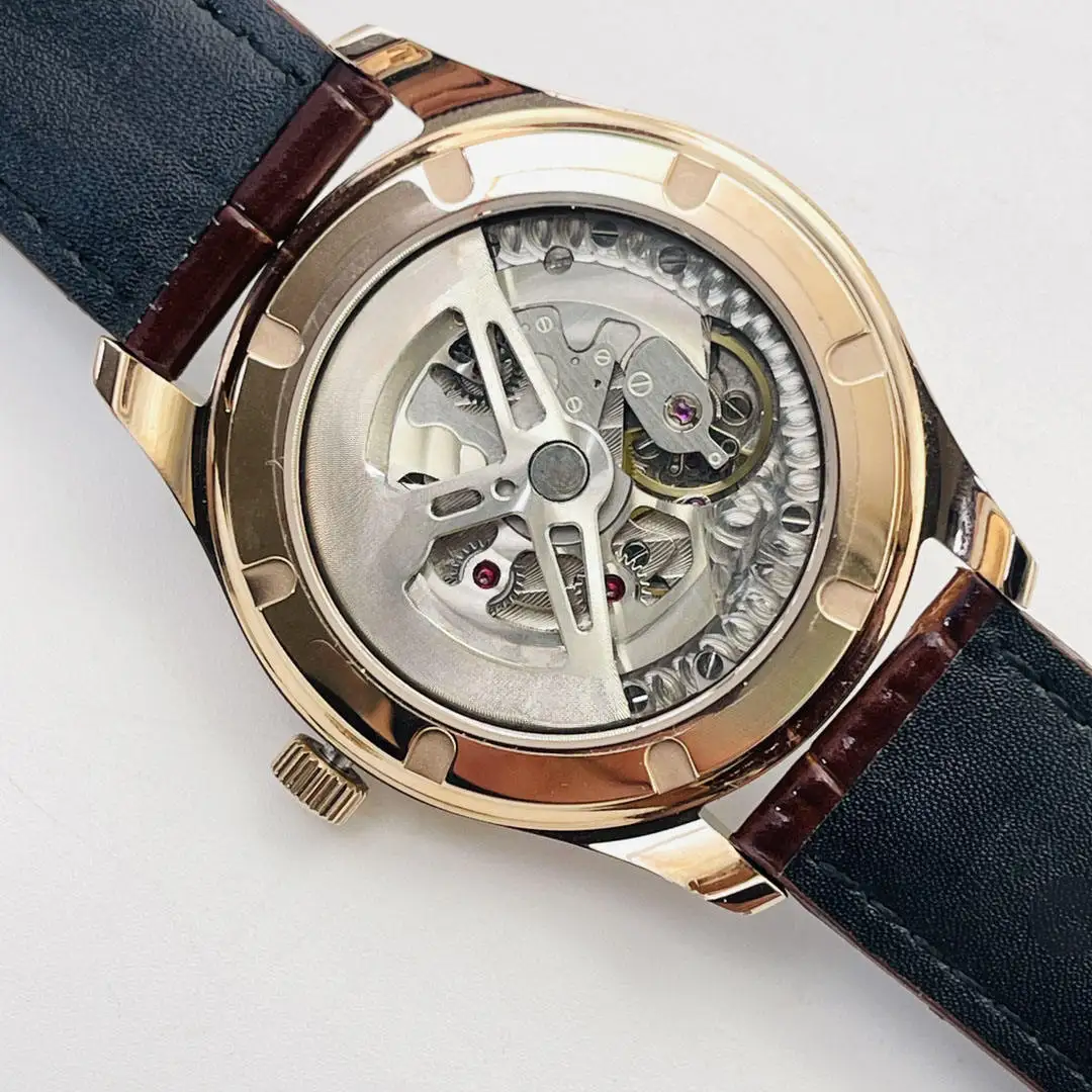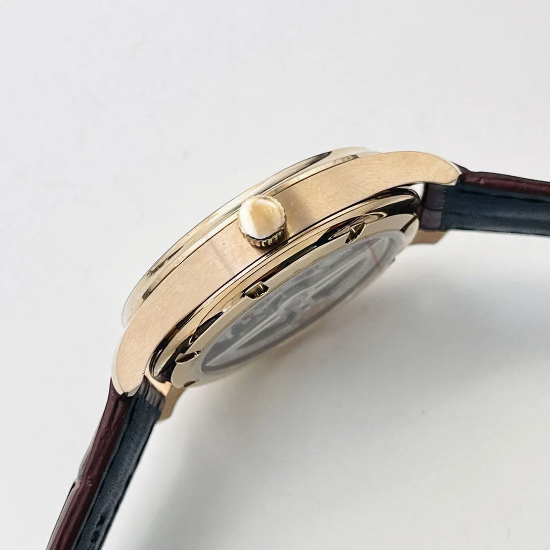 New Luxury High-quality Business Round Men's Mechanical Watch White Dial Brown Leather Strap High-end Automatic Waterproof Watch