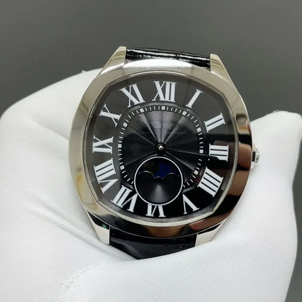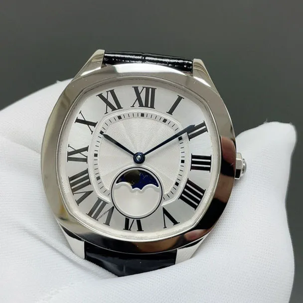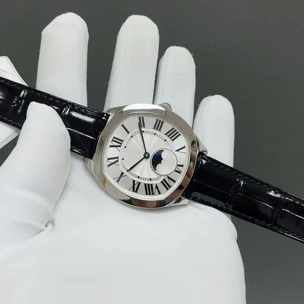 Luxury High-quality Men's Mechanical Watch White Dial Stainless Steel case Genuine Leather Strap Automatic Classic Retro Watches